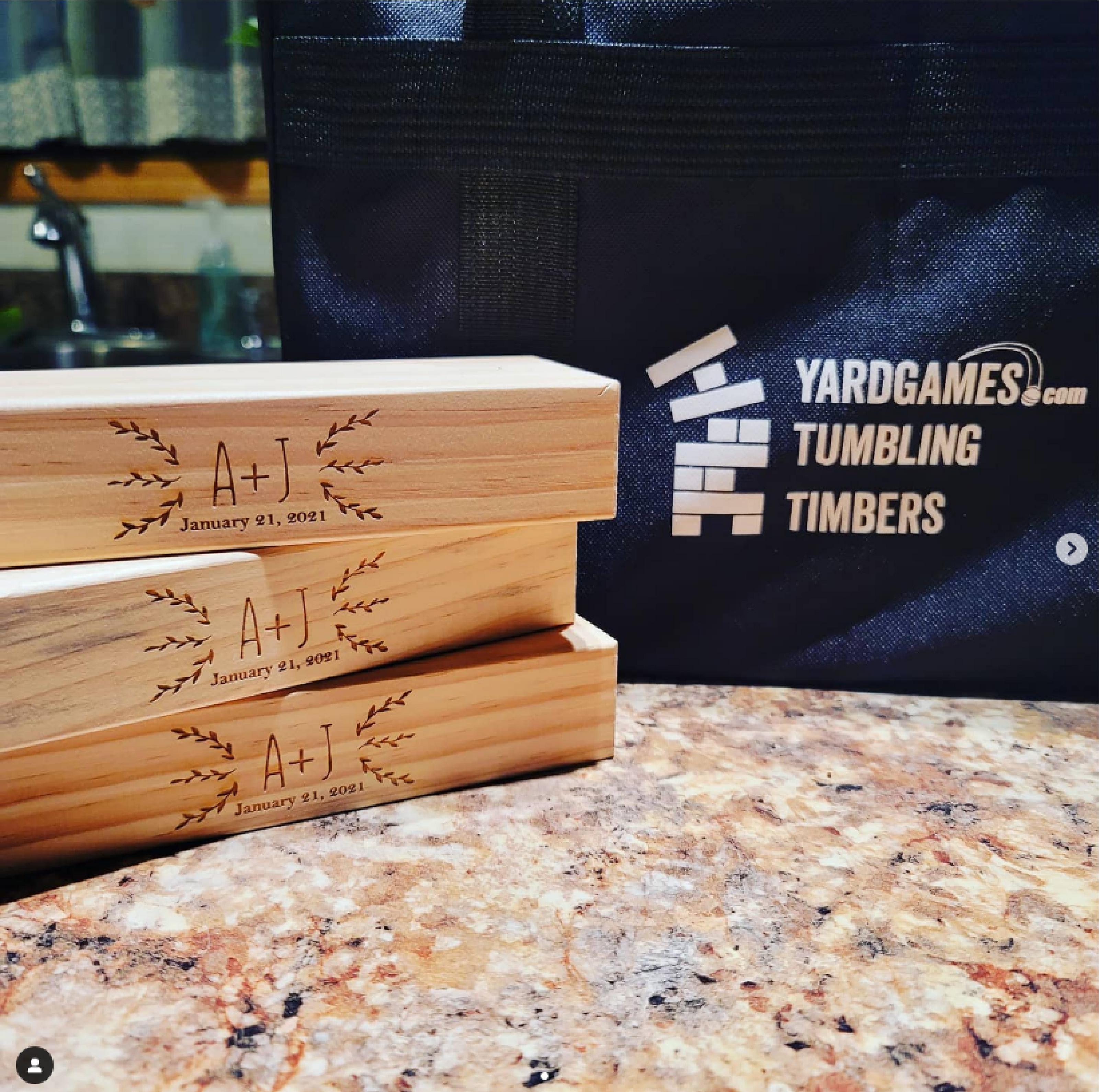 A big THANK YOU to our awesome friends Lisa & Kevin over at @yardgamesdotcom for this rad Giant Tumbling Timbers game personalized with our initials & wedding date!