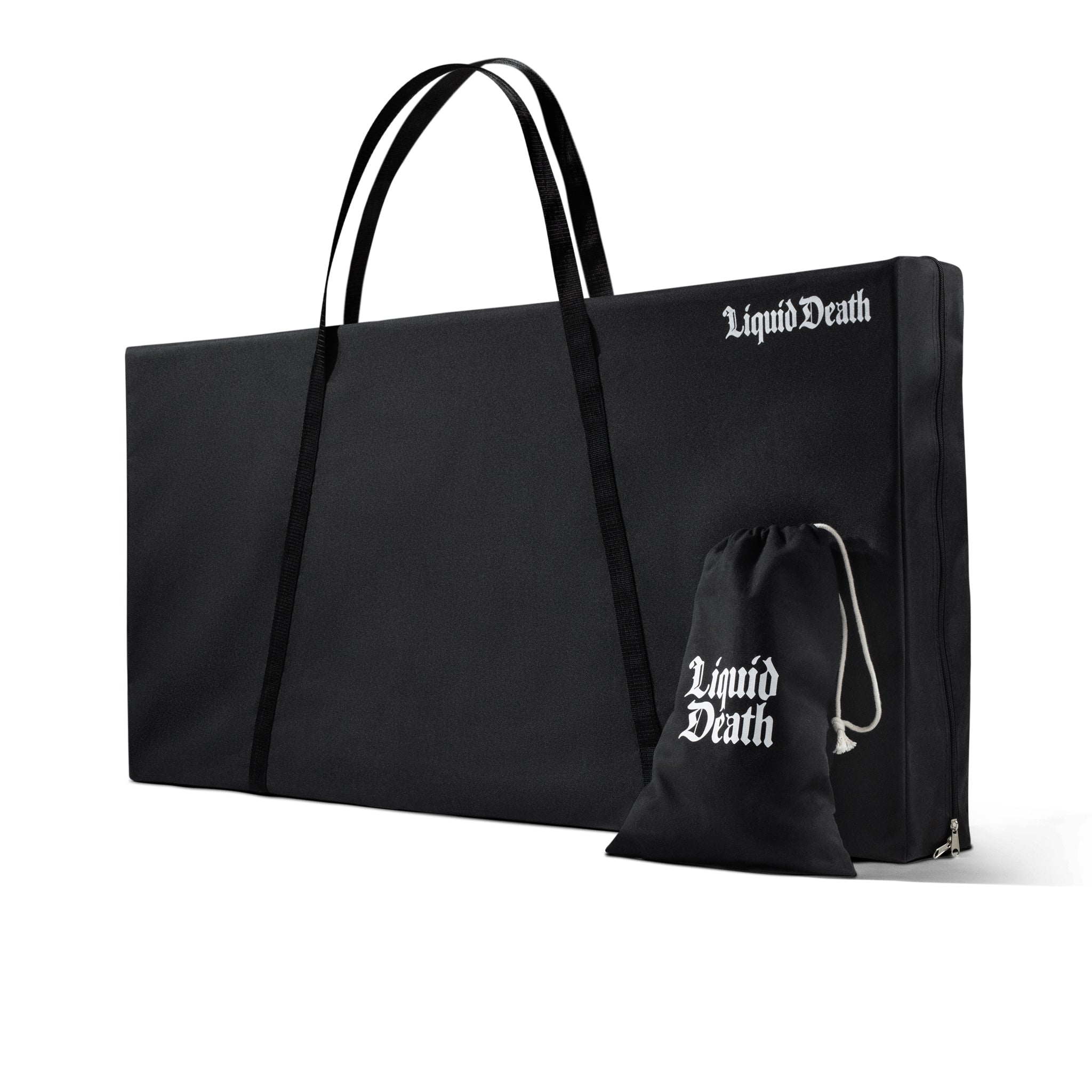 We did a cornhole collab with Liquid Death. They brought in designer Julian Akbar to create an authentic artwork on a our wooden cornhole boards.