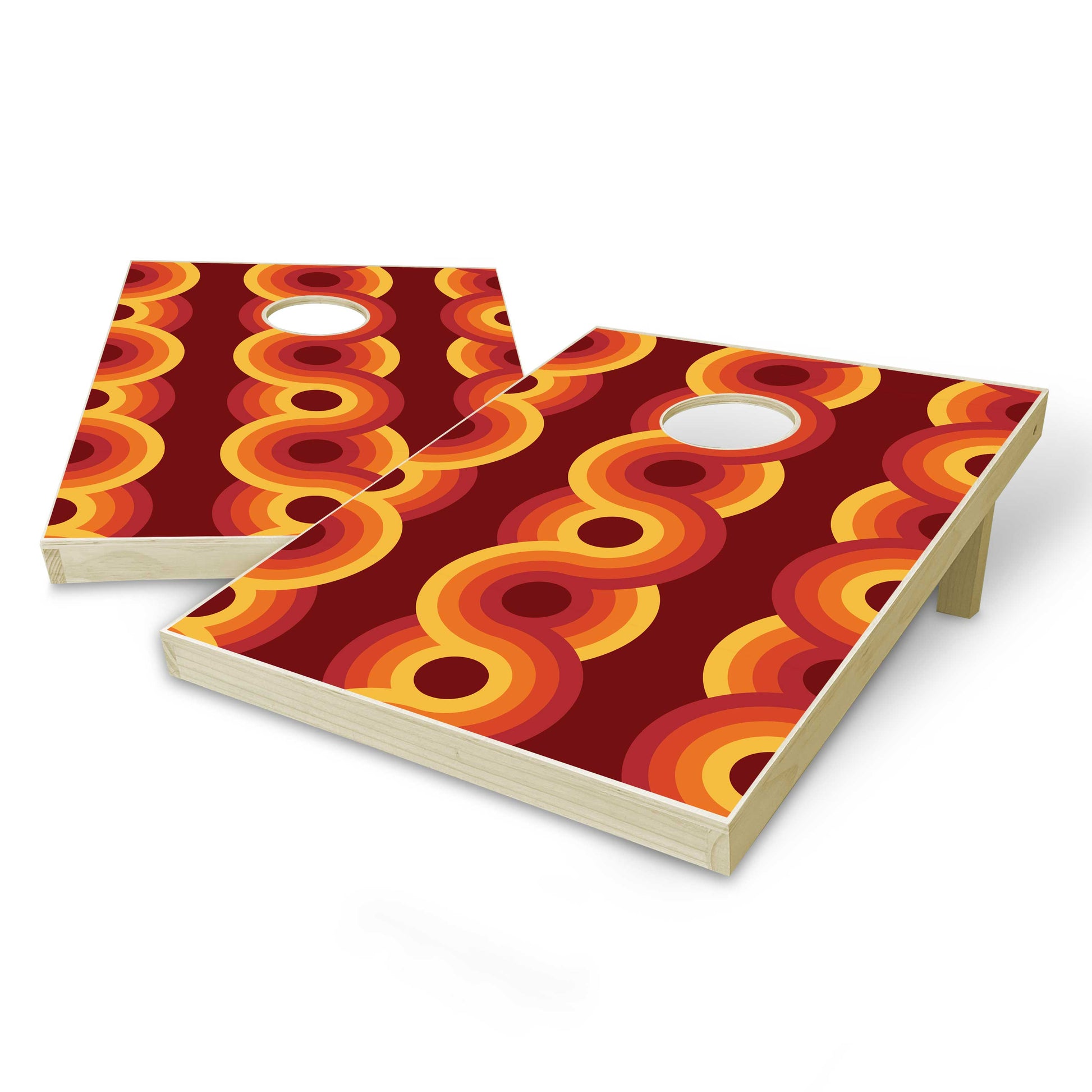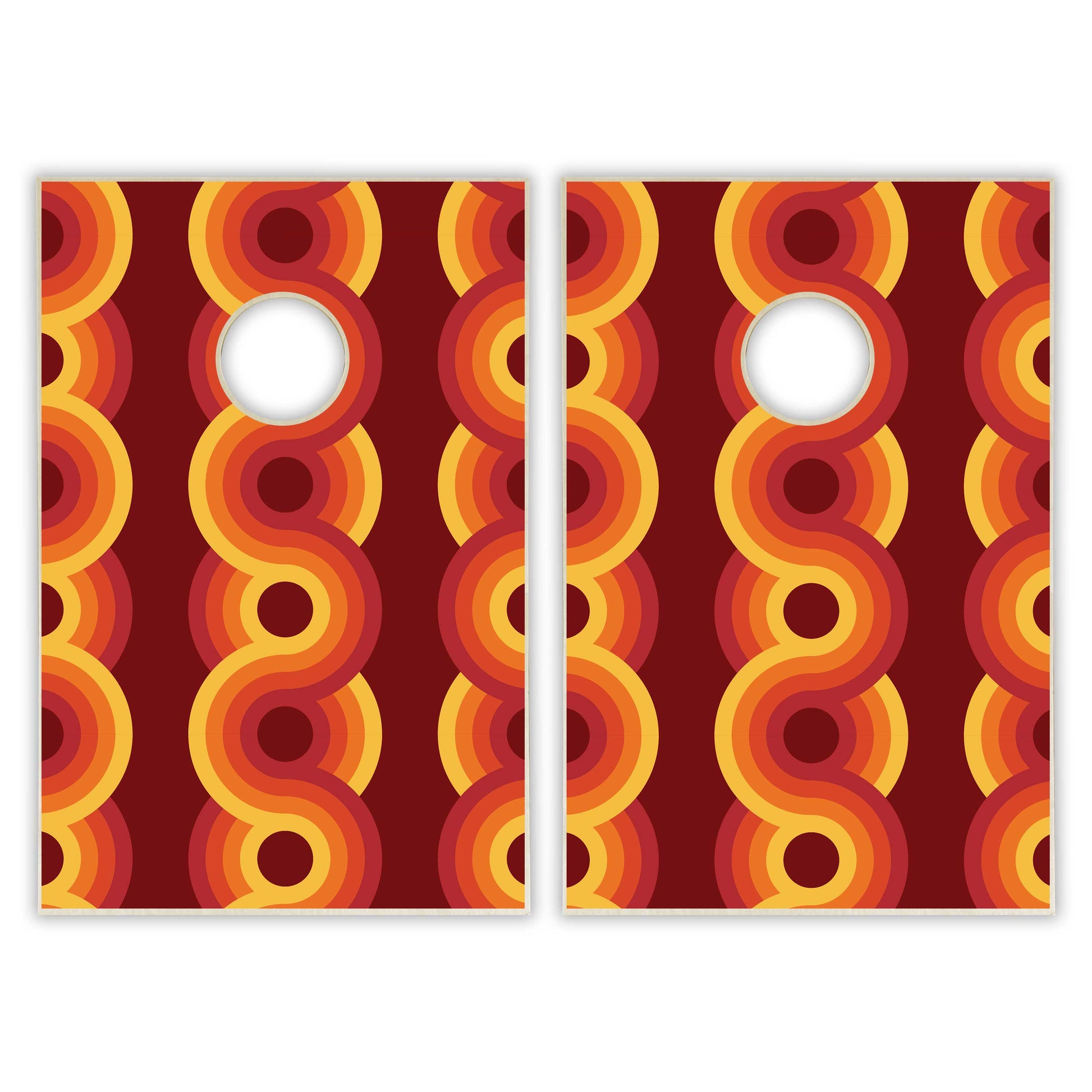 Show off at your next event with this specialty-designed 70s Circular Pattern Cornhole party game set!