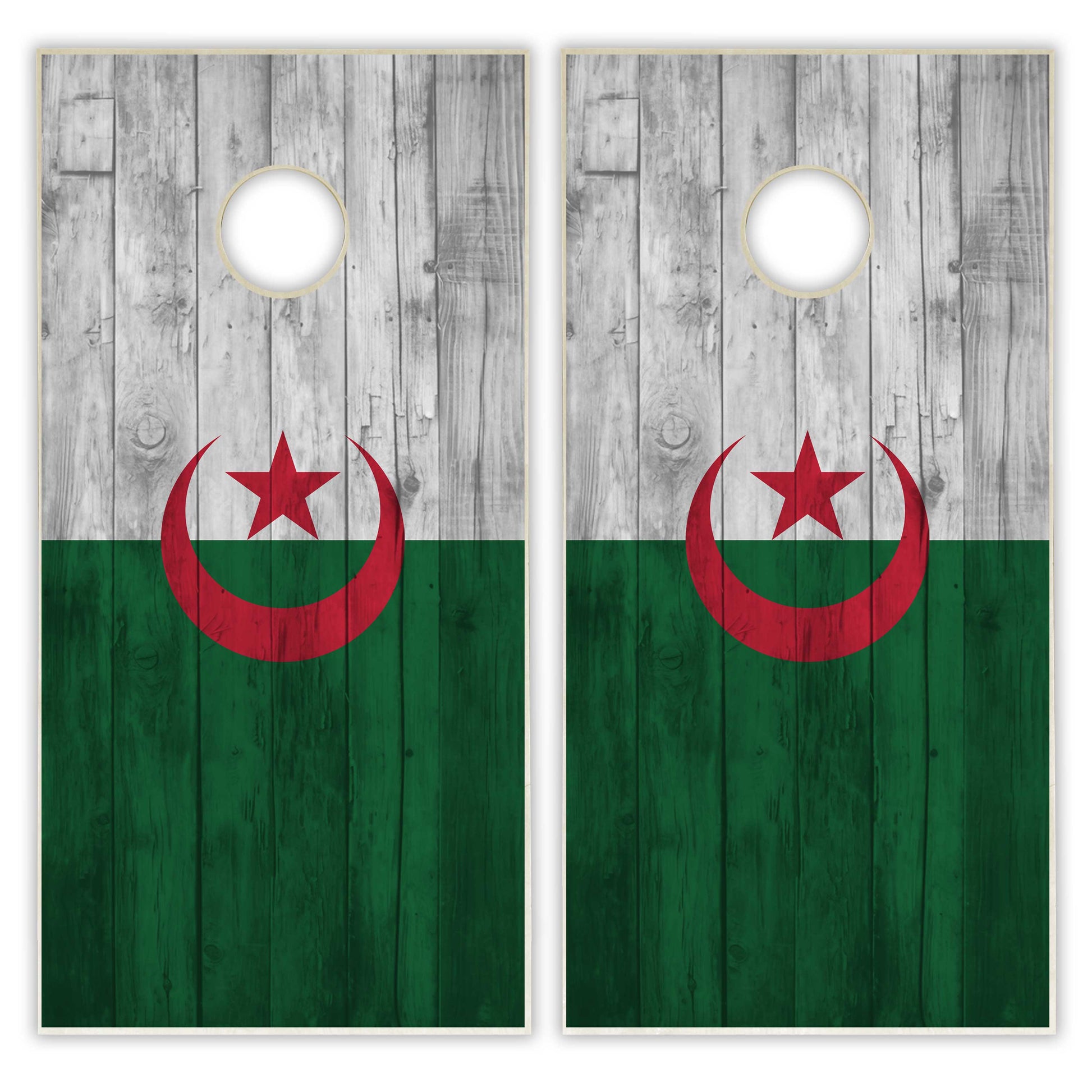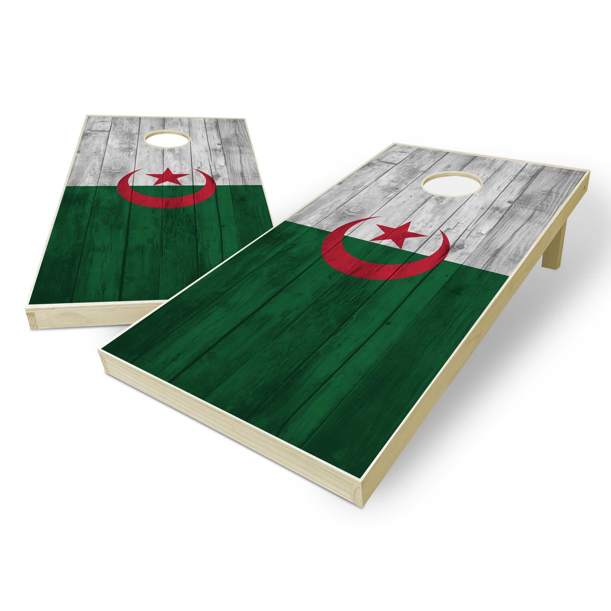 Show off at your next event with this specialty-designed Algeria Flag Cornhole party game set!