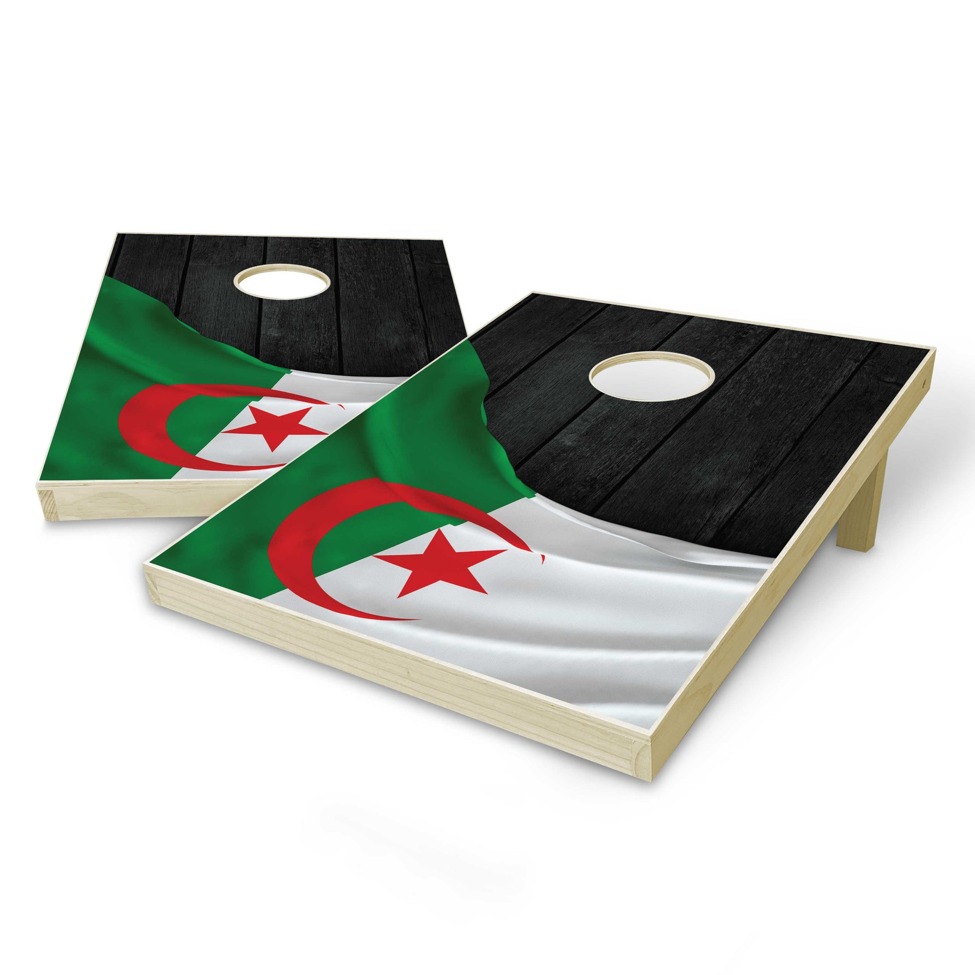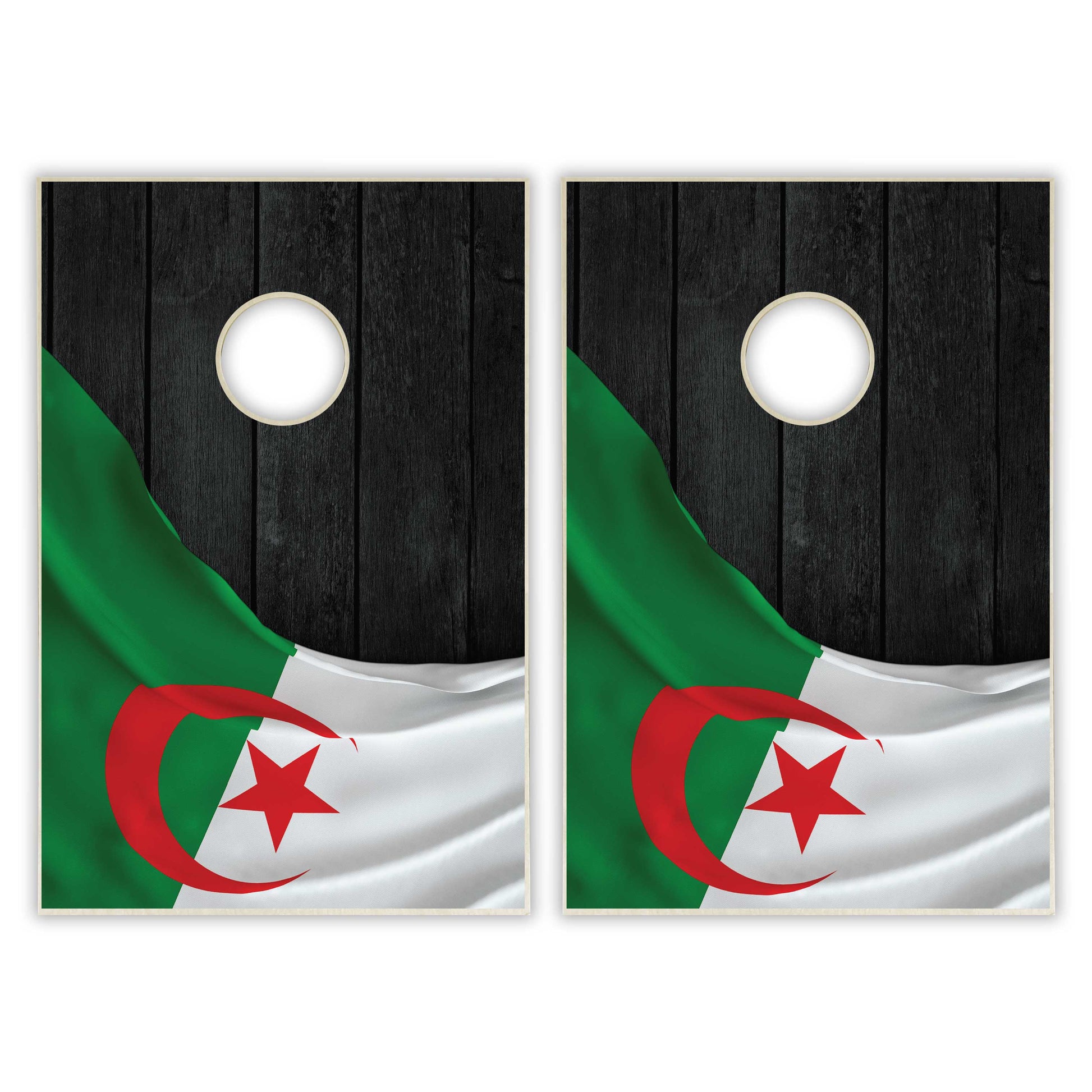 Algeria Flag Tailgate Cornhole Set - Black Wood