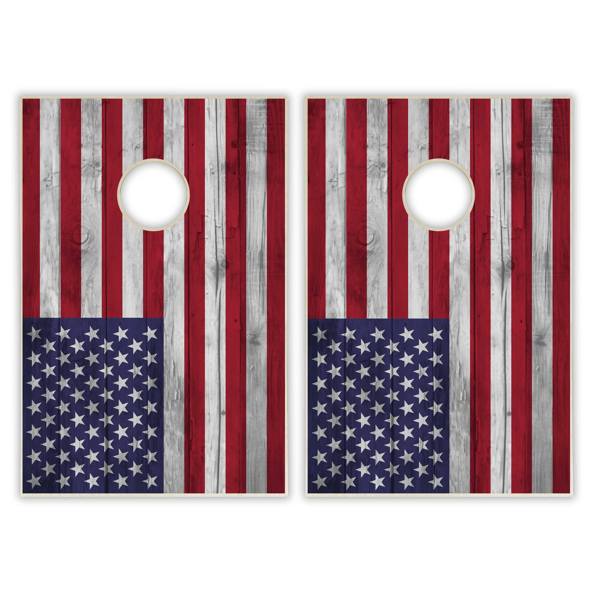 American Flag Tailgate Cornhole Set - Distressed Wood
