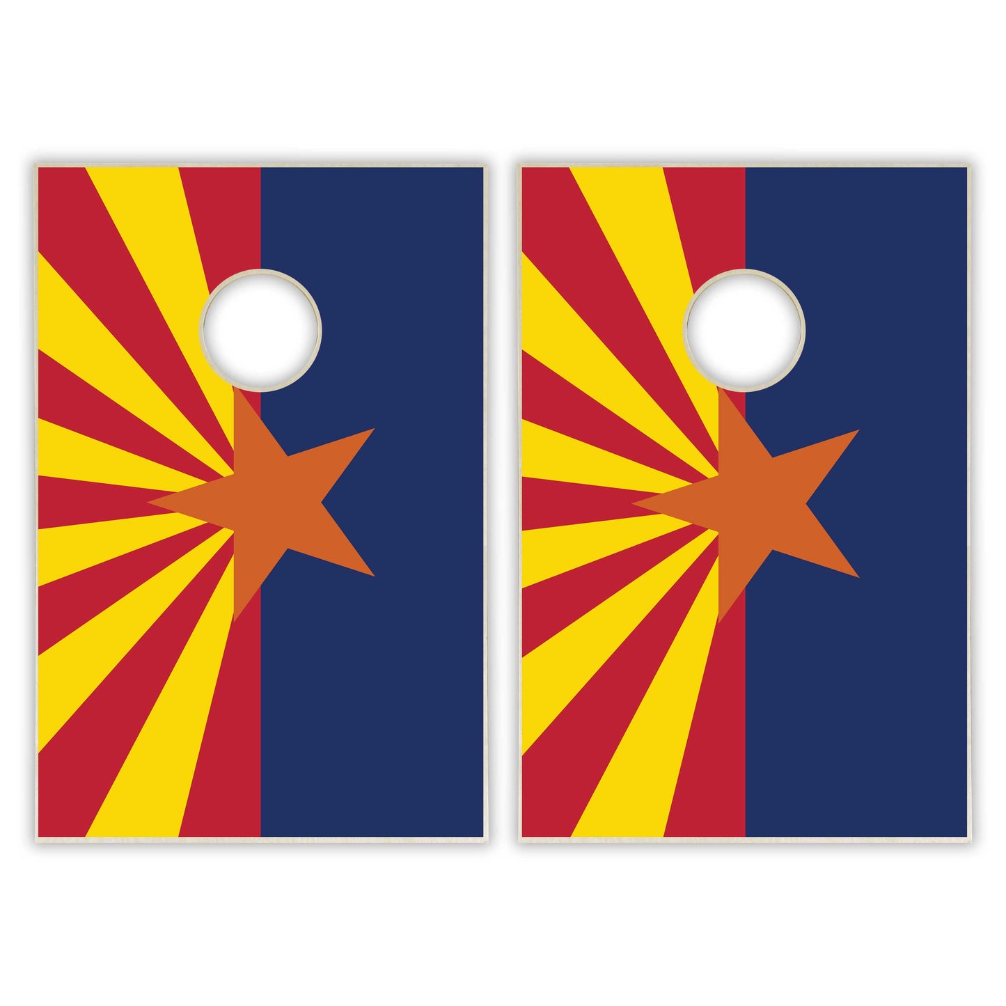 - 2 Regulation Size (24" x 36") Cornhole Boards with Arizona Flag printed vinyl decals
