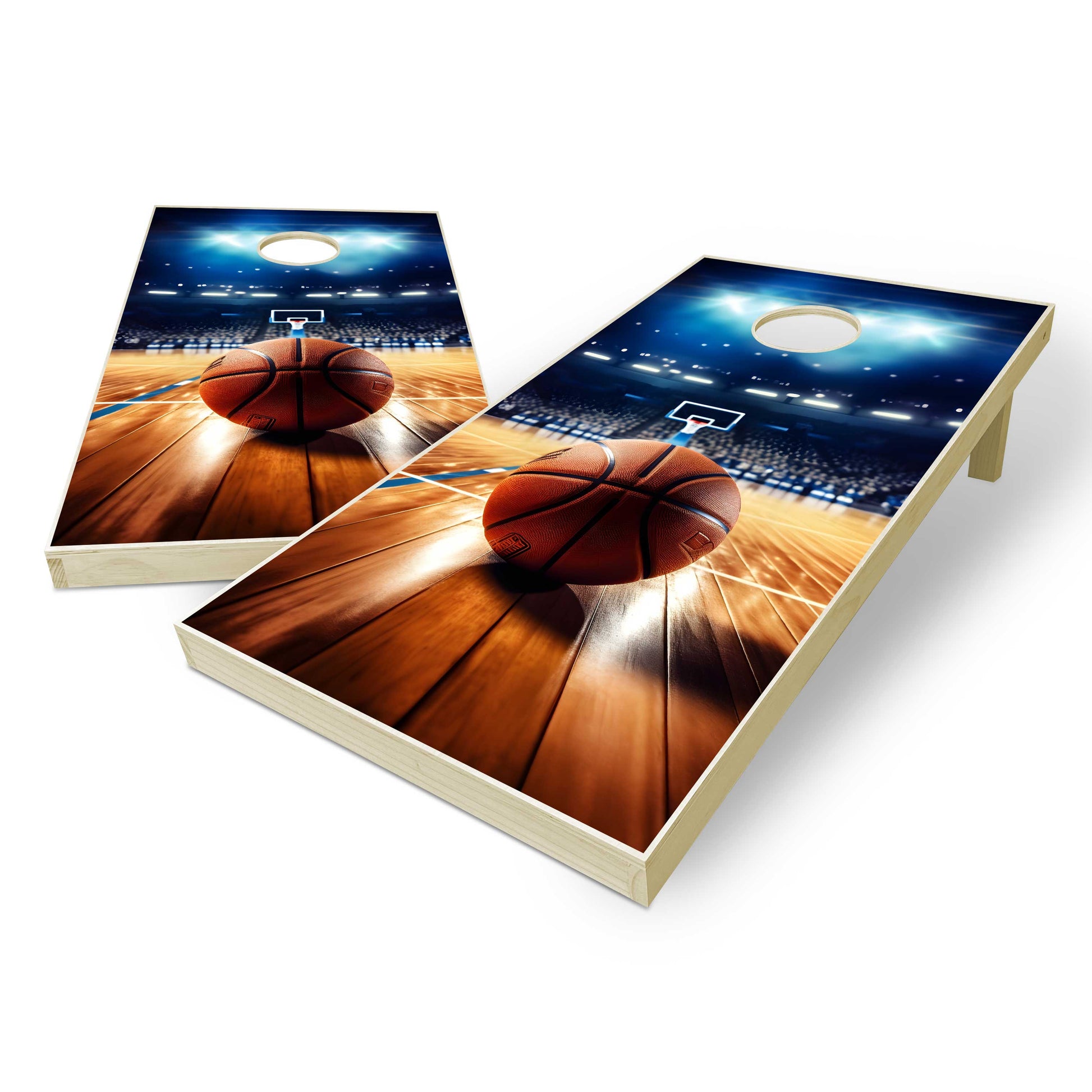 Show off at your next event with this specialty-designed Basketball Cornhole party game set!
