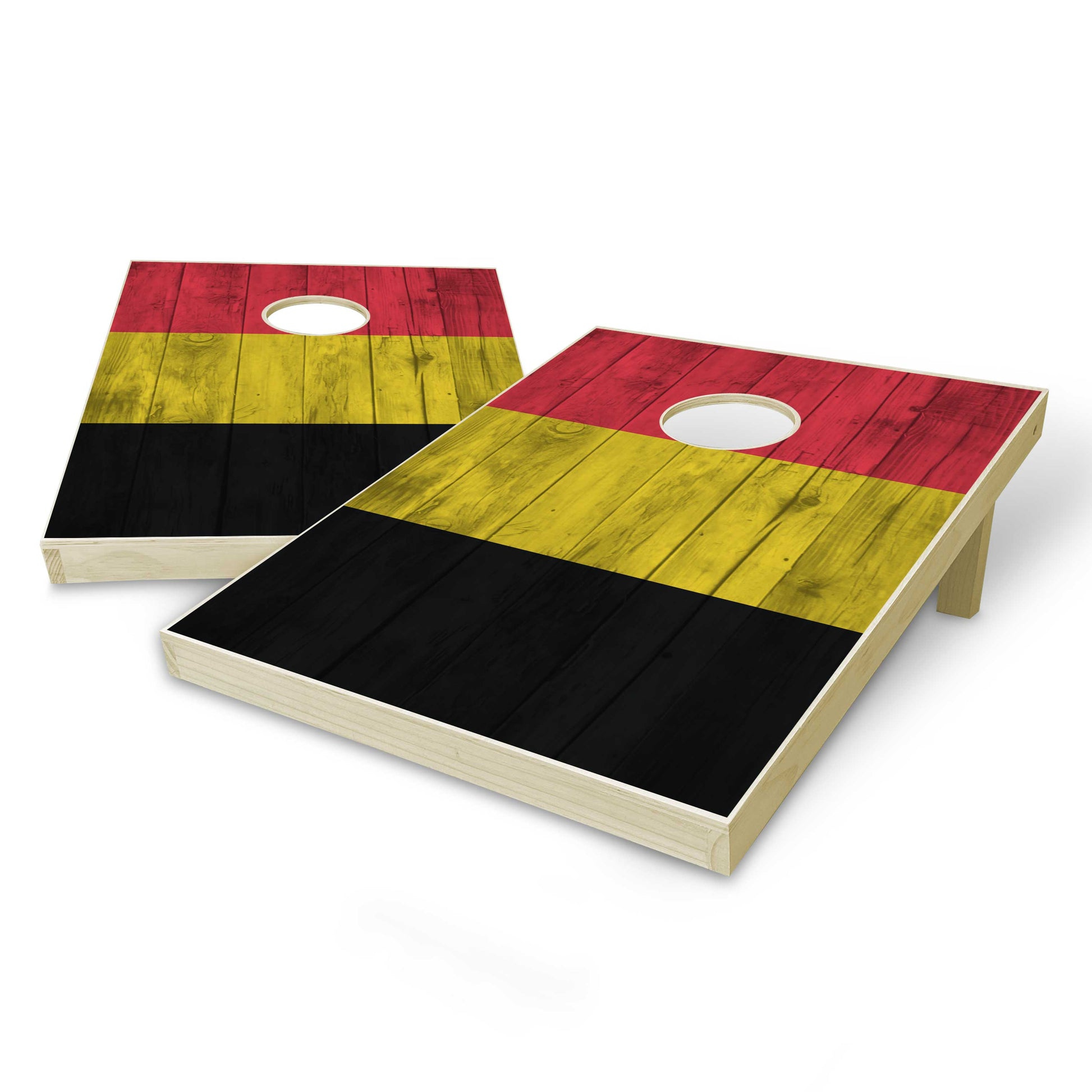 Belgium Flag Tailgate Cornhole Set - Distressed Wood