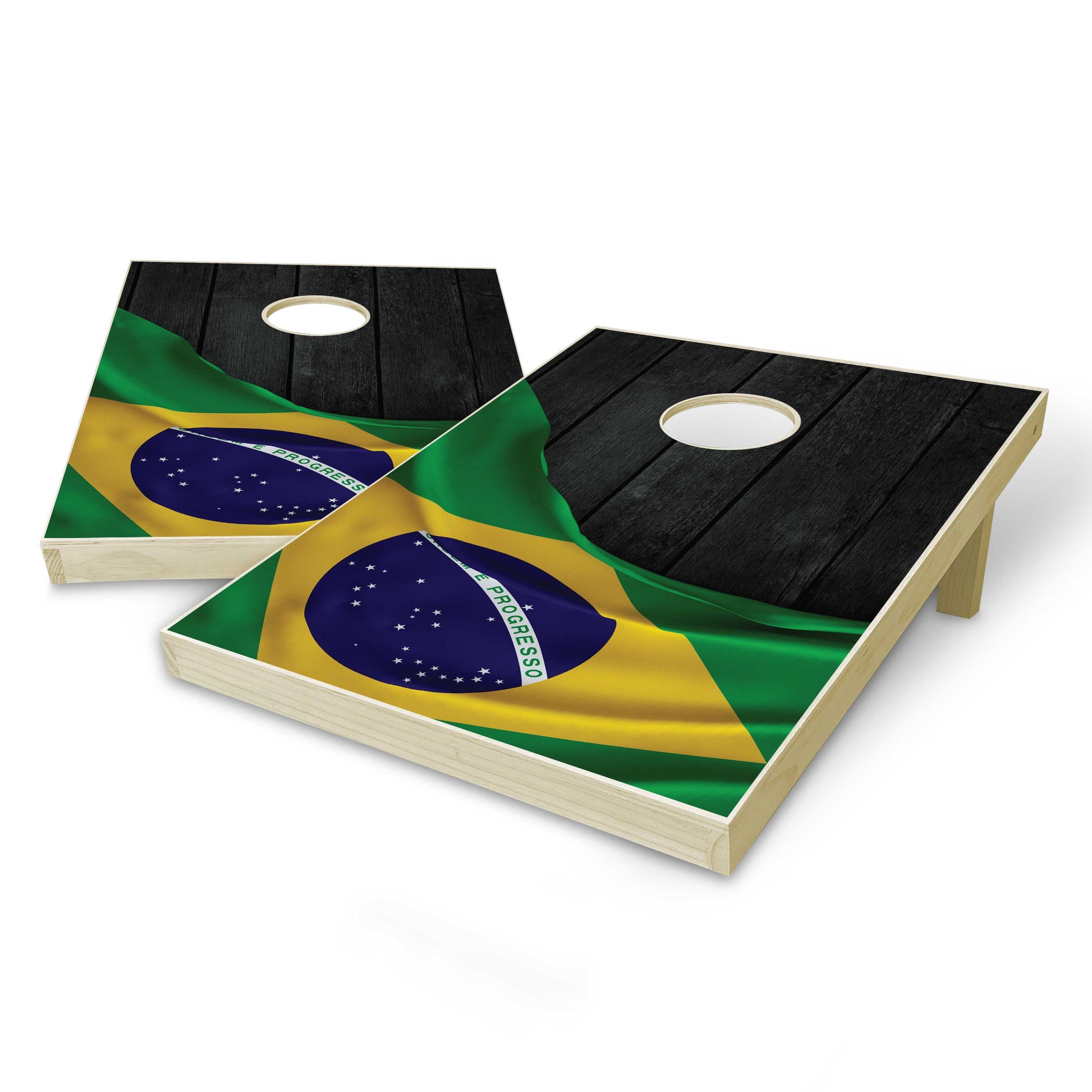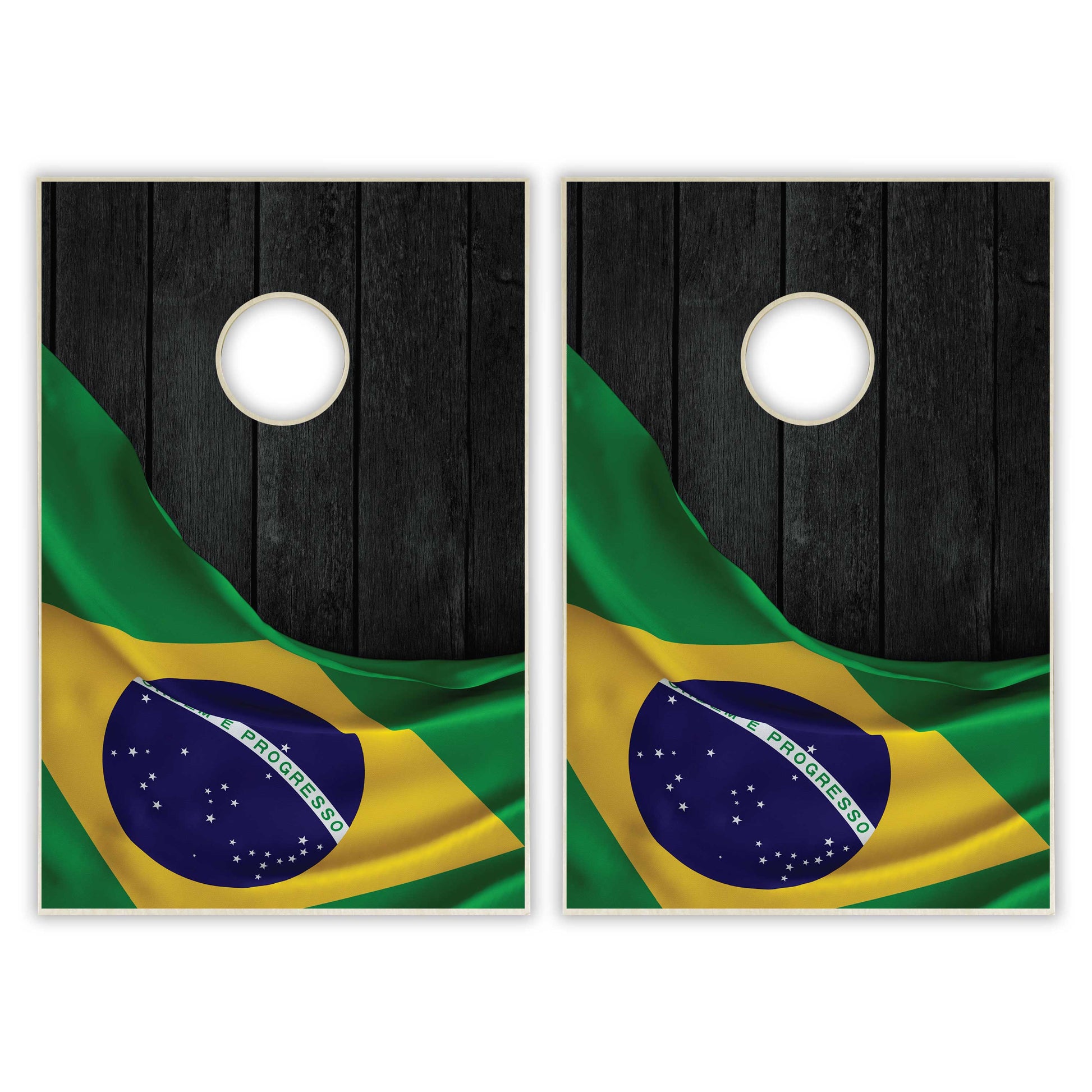 Brazil Flag Tailgate Cornhole Set - Black Wood