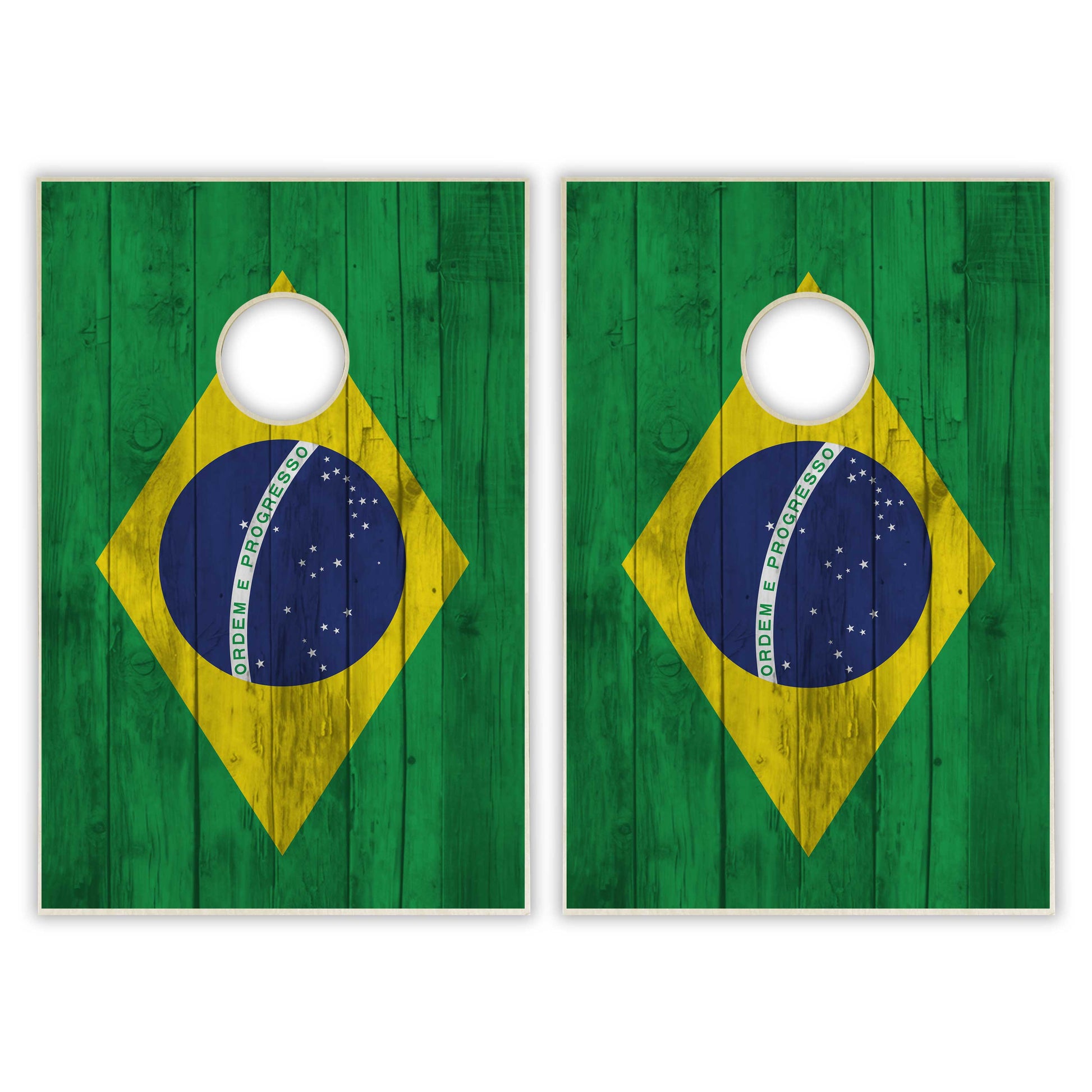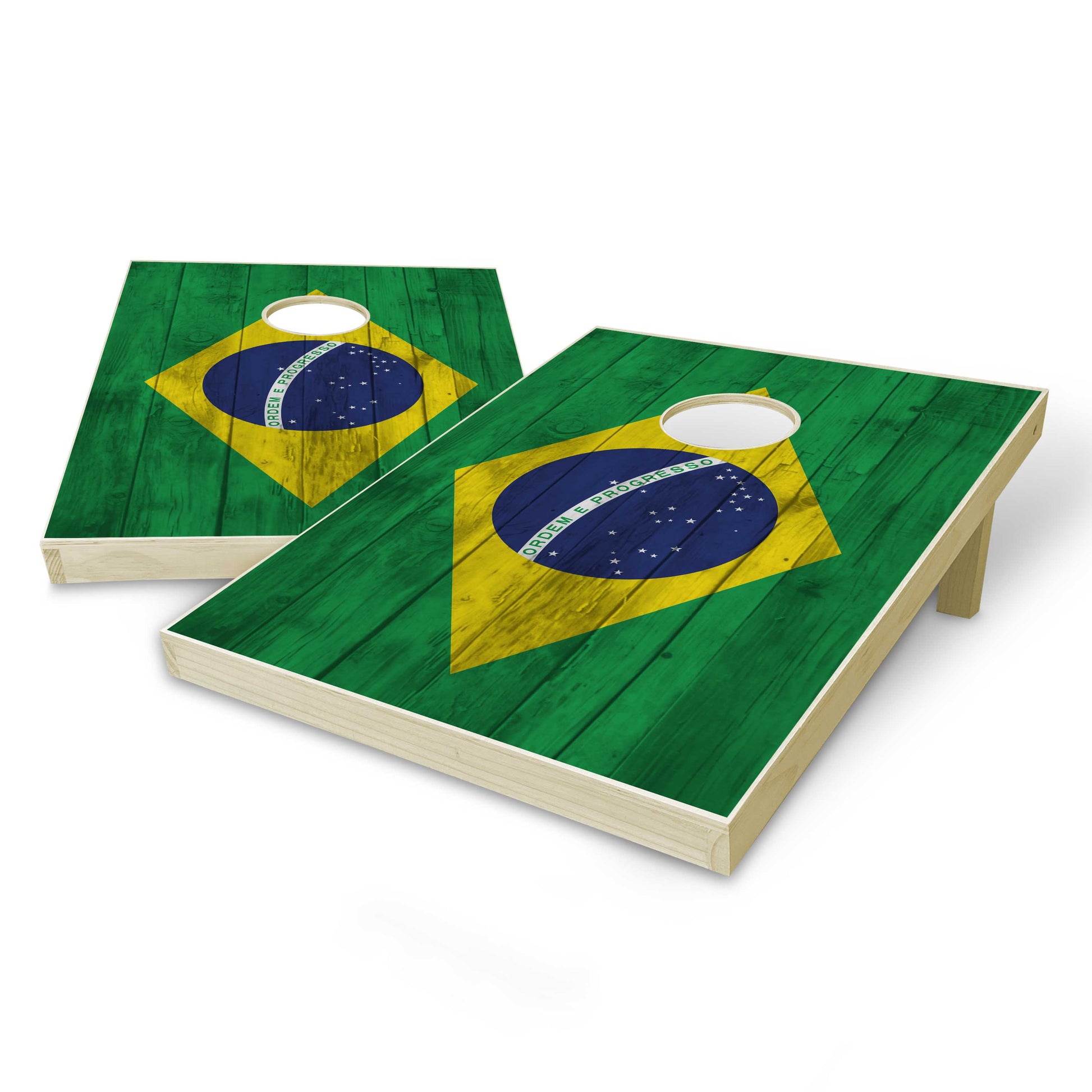 Brazil Flag Tailgate Cornhole Set - Distressed Wood
