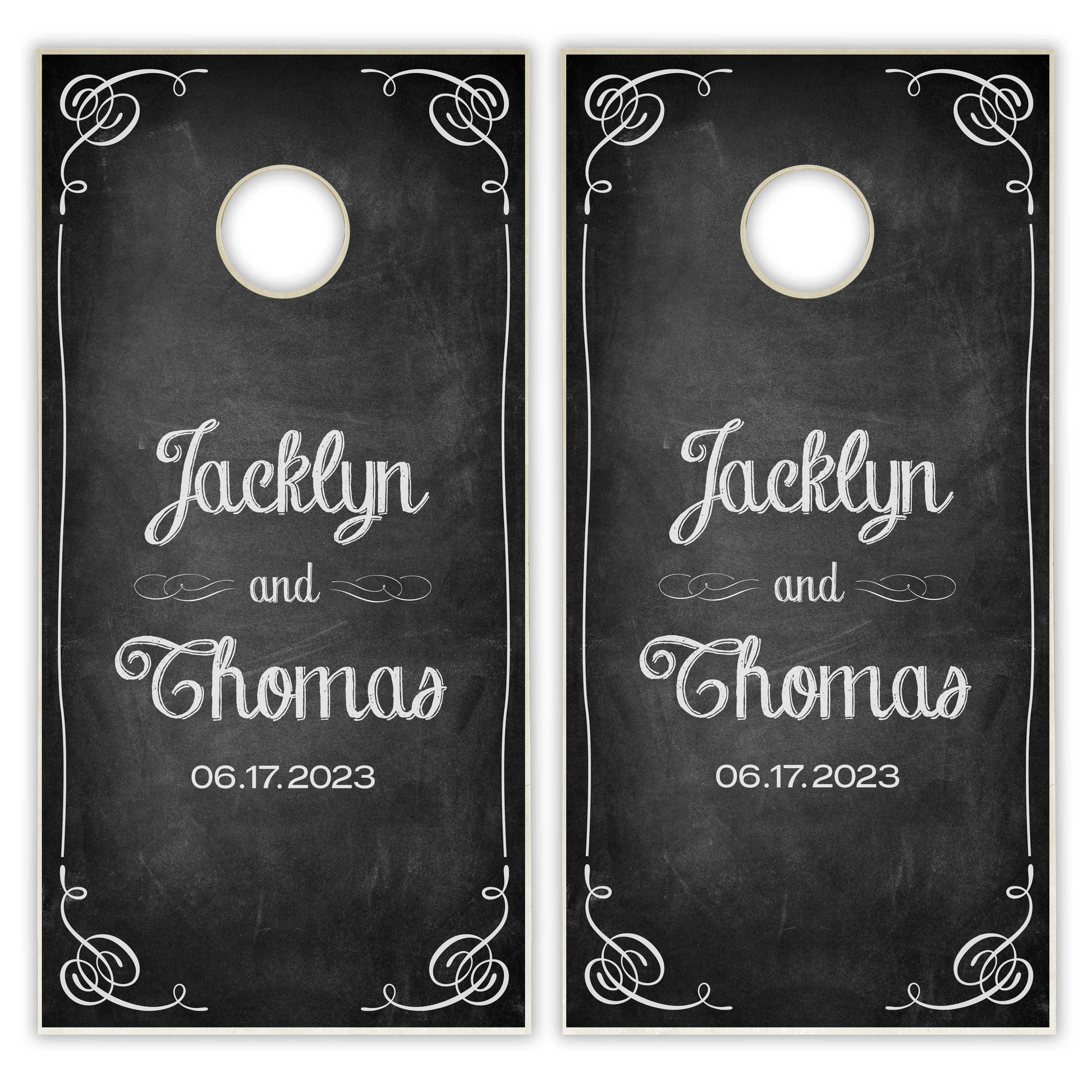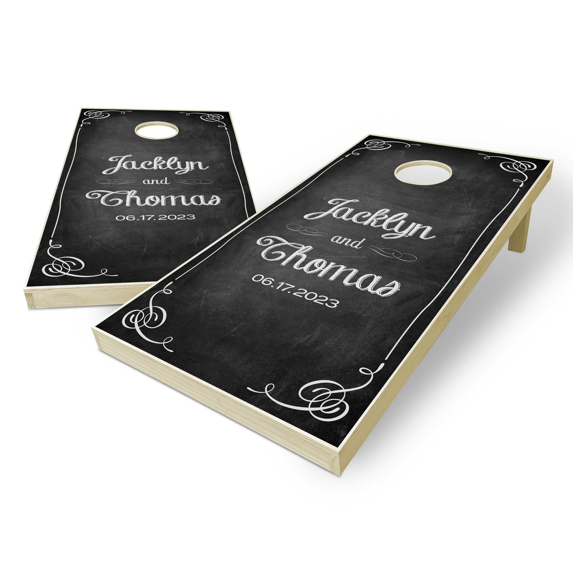 Show off at your next event with this specialty-designed Customized Chalk Board Cornhole party game set!