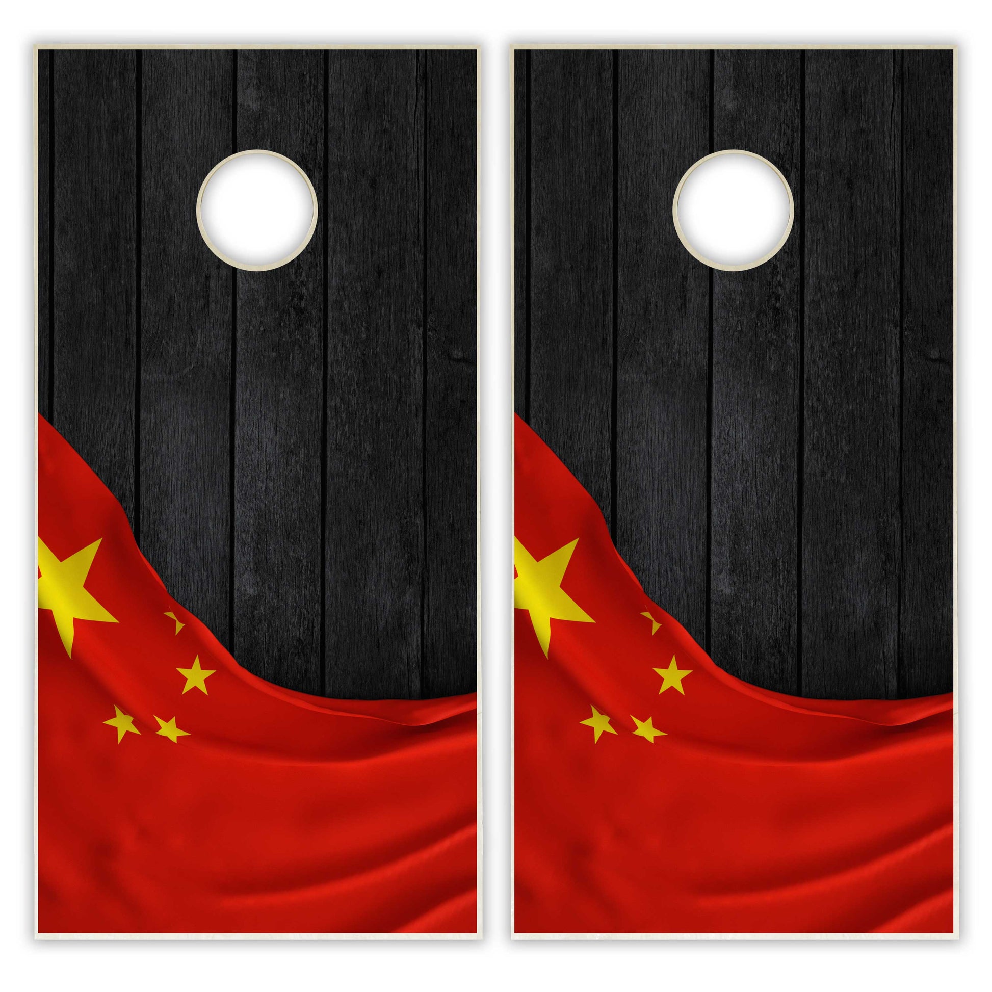 China Flag Cornhole Set - Black Wood