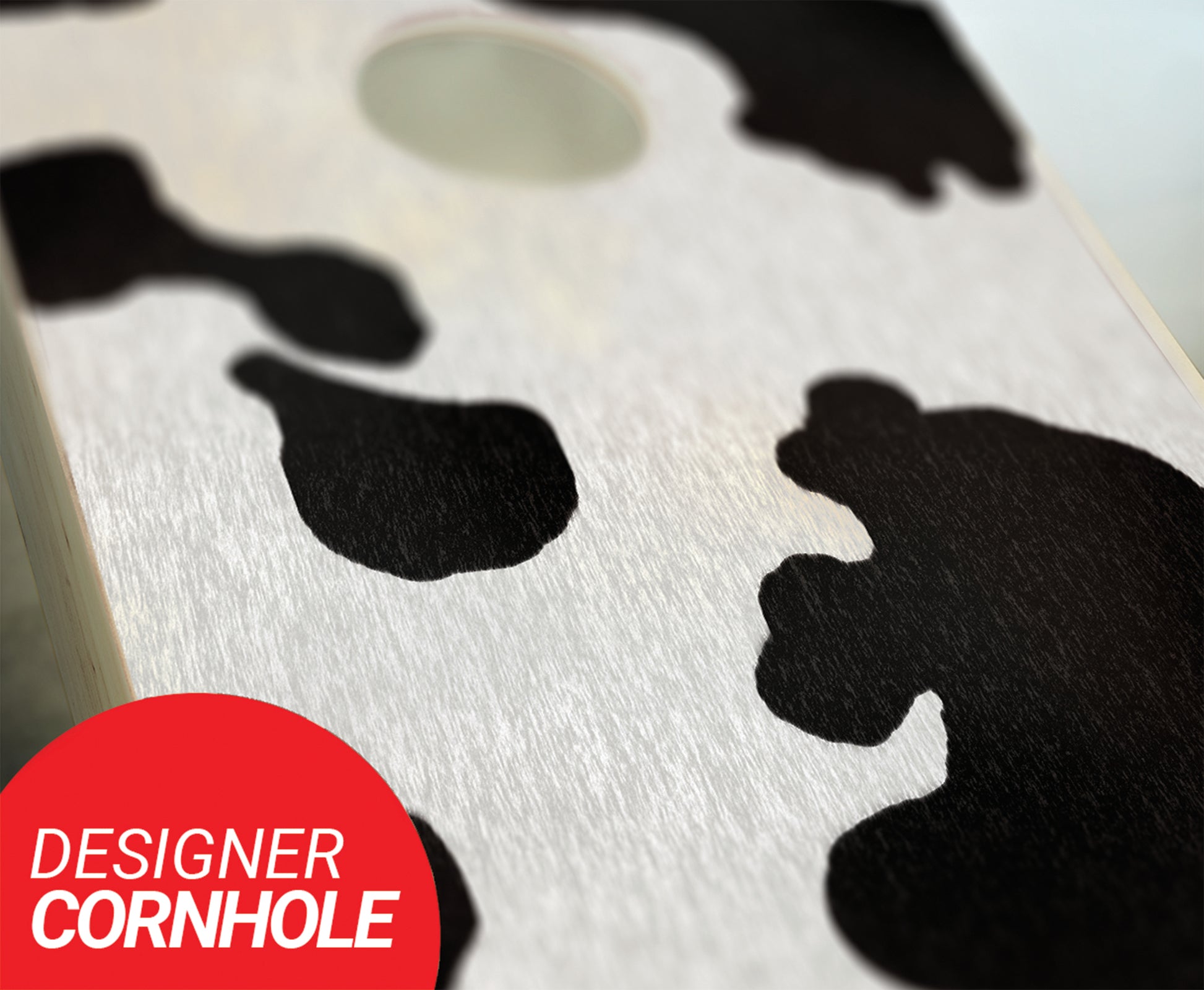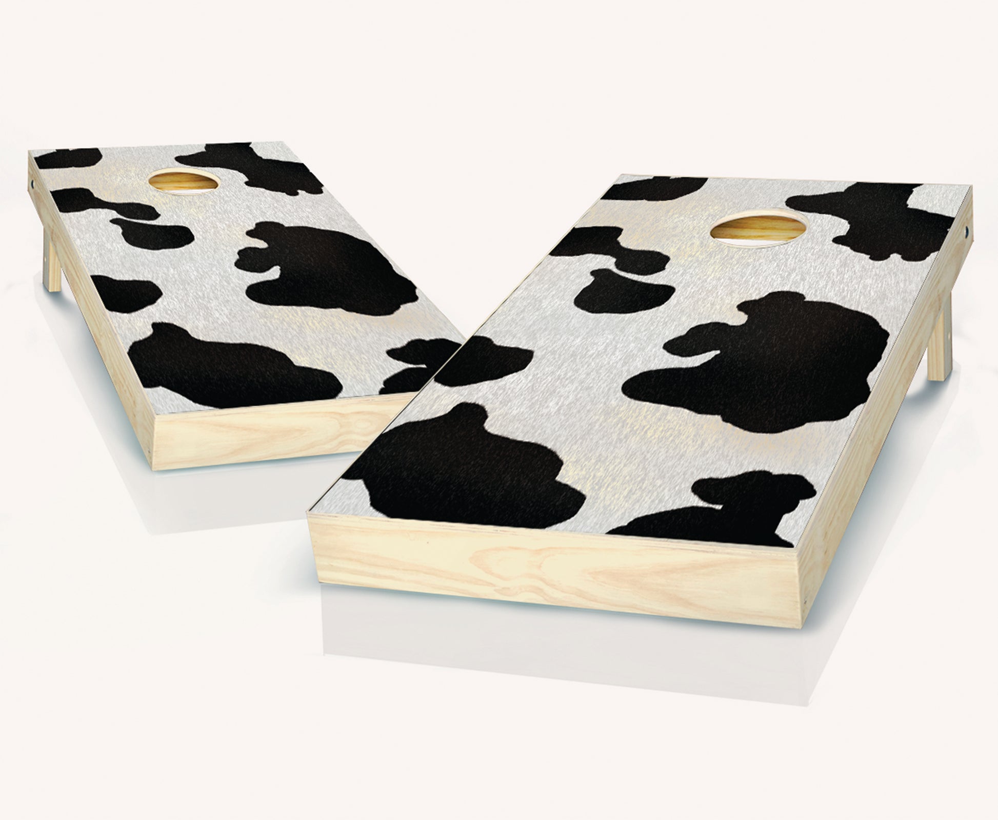Show off at your next event with this specialty designed cornhole bean bag toss with cow print design! The decal is printed vinyl and finished with a clear coat polyurethane to protect your boards for years. This 24"x48" set of cornhole boards comes with folding legs and you can add a full set of 8 standard cornhole bags. The boards are completely sanded for a smooth finish. These boards are made of quality 1/2" plywood and will hold up to anything you throw at them. Great for a BBQ, tailgating, camping, or just a relaxing day in the sun. Our cornhole bean bag toss with cow print design is ACA Certified!