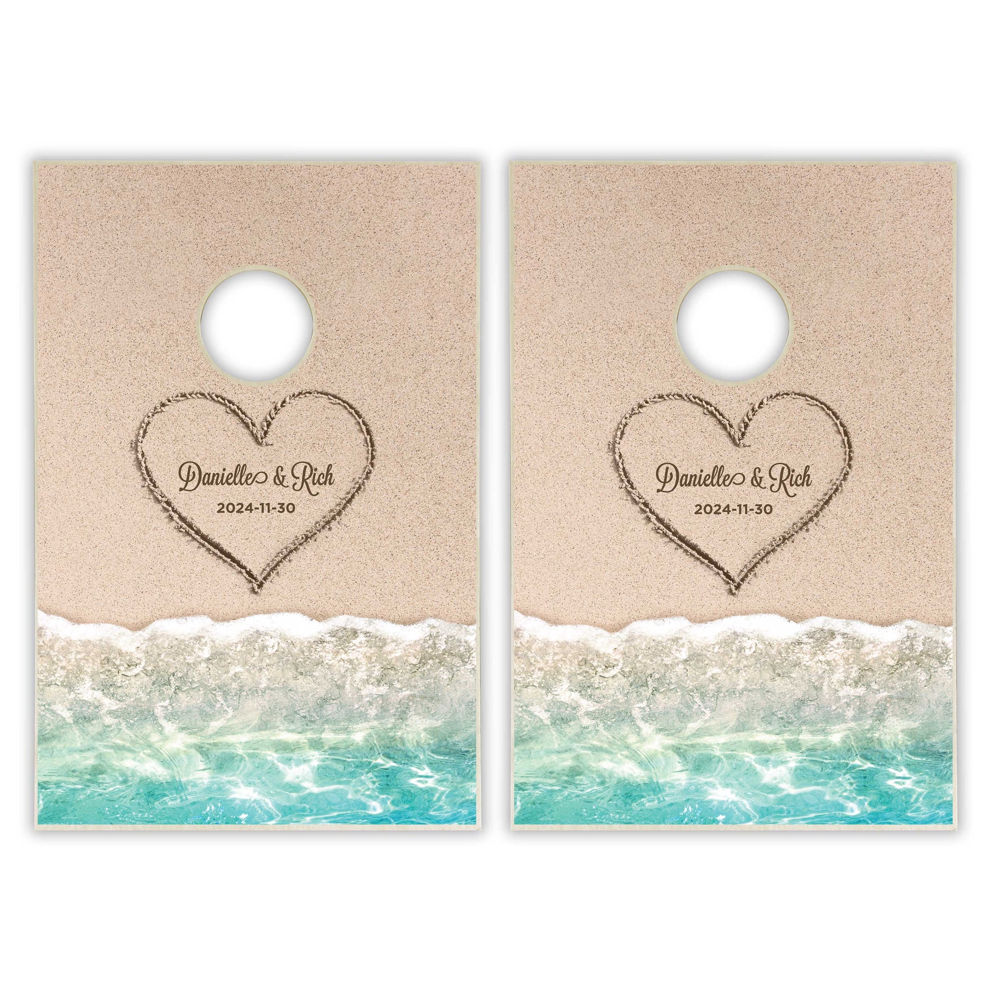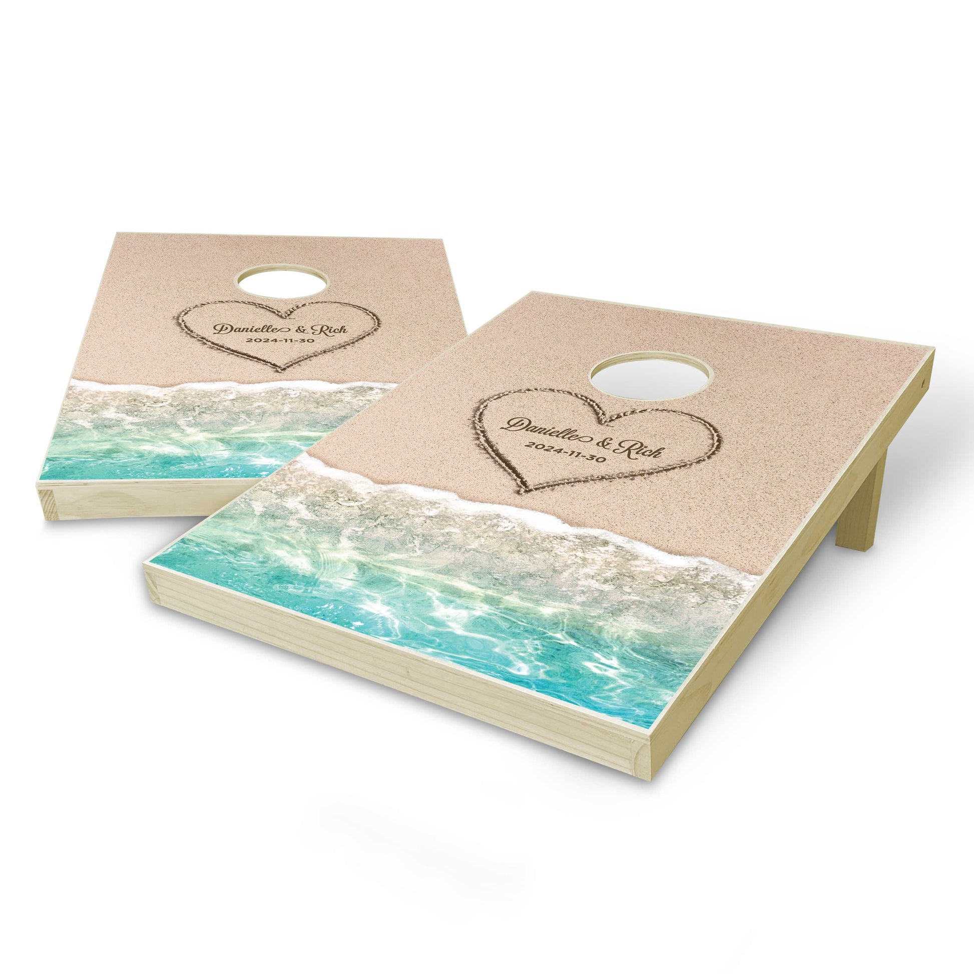 Show off at your next event with this specialty-designed Customized Beach Wedding Cornhole party game set!