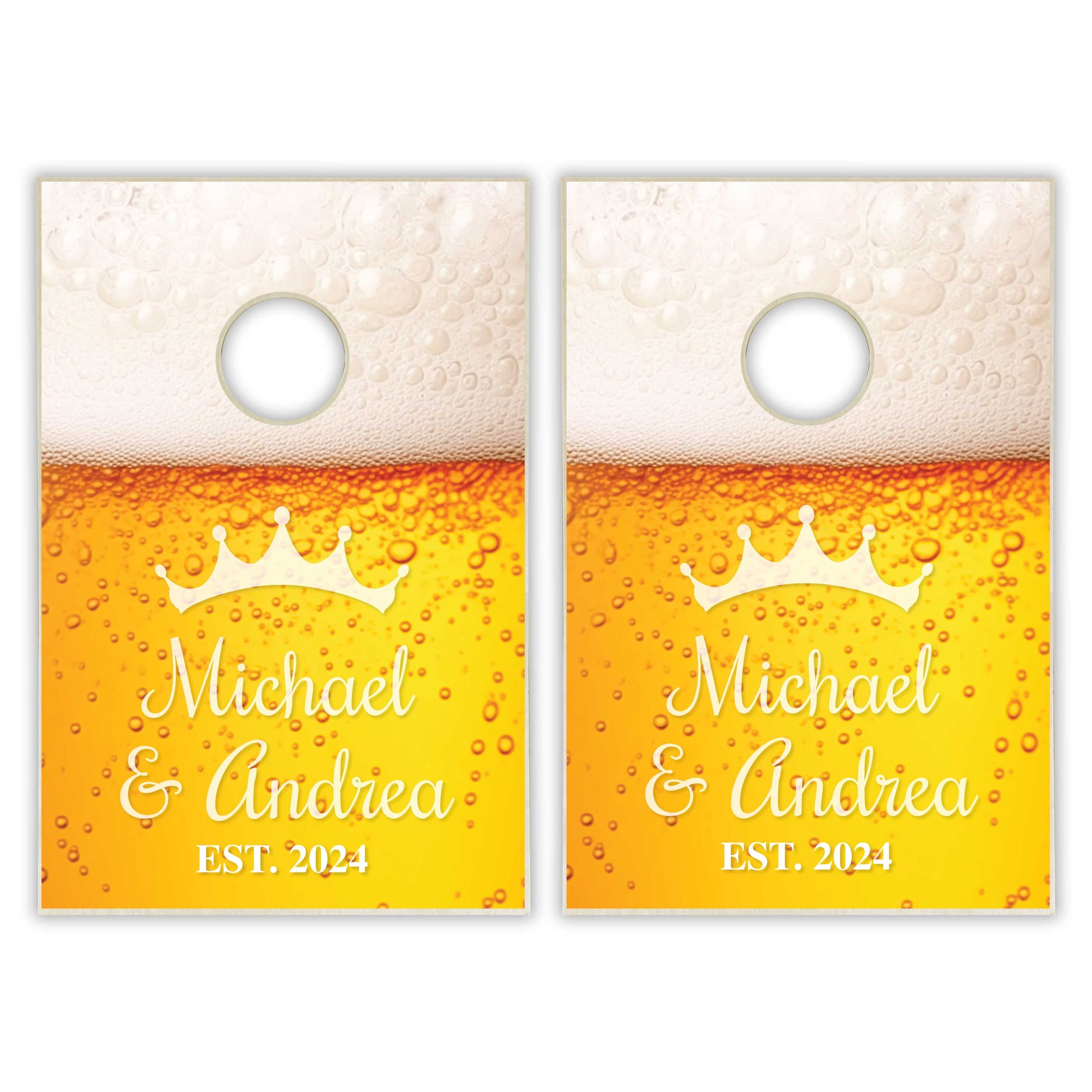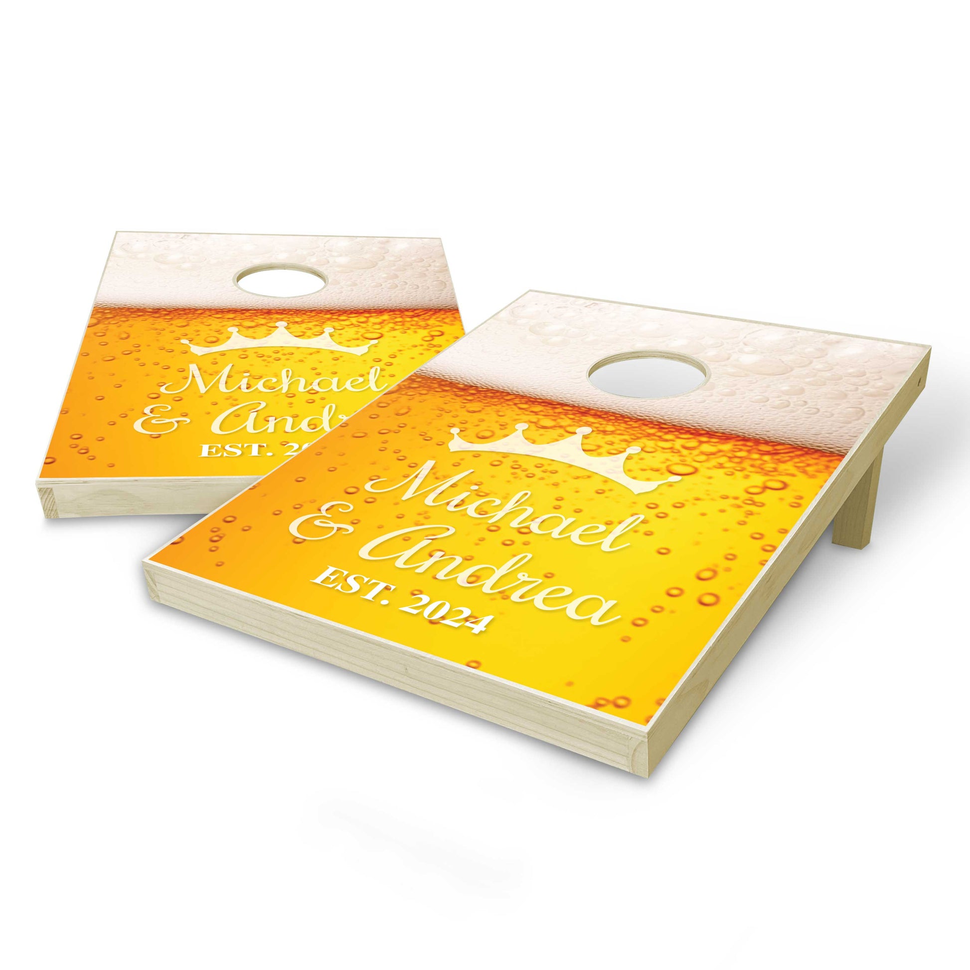 Show off at your next event with this specialty-designed Customized Beer Cornhole party game set!