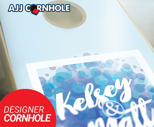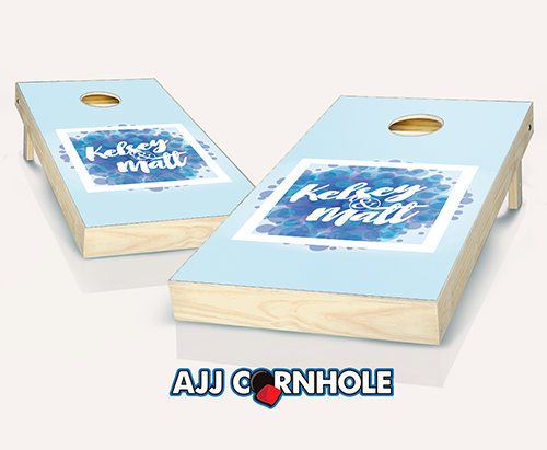 Play cornhole at your reception with these custom name cornhole boards for sale! The decal is printed vinyl and finished with a clear coat polyurethane to protect your boards for years. This 24"x48" set of cornhole boards comes with folding legs and you can add a full set of 8 standard cornhole bags. The blue cornhole boards are completely sanded for a smooth finish. These boards are made of quality 1/2" plywood and will hold up to anything you throw at them. Great for a BBQ, tailgating, camping, or just a relaxing day in the sun. Our boards are ACA Certified !
