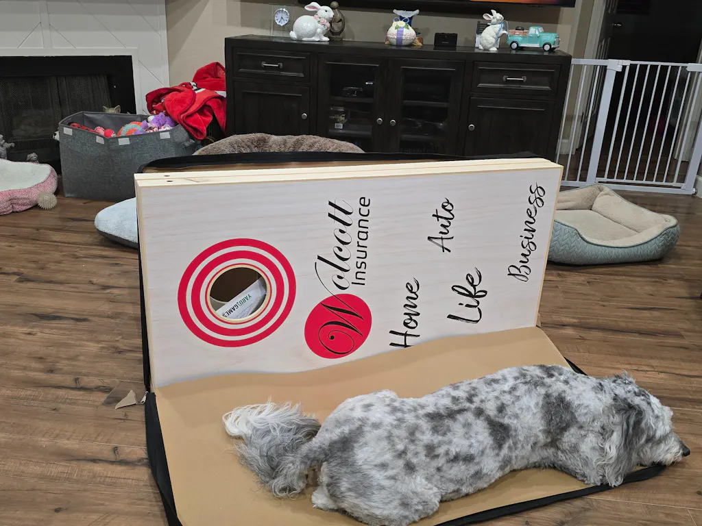 Design your own cornhole wrap to cover these durable, high-quality cornhole boards with any image of your choice! Simply upload your image and we'll provide a mockup of the boards with your image applied on top. Your image will be printed on a vinyl decal and applied to the boards for a seamless finish.