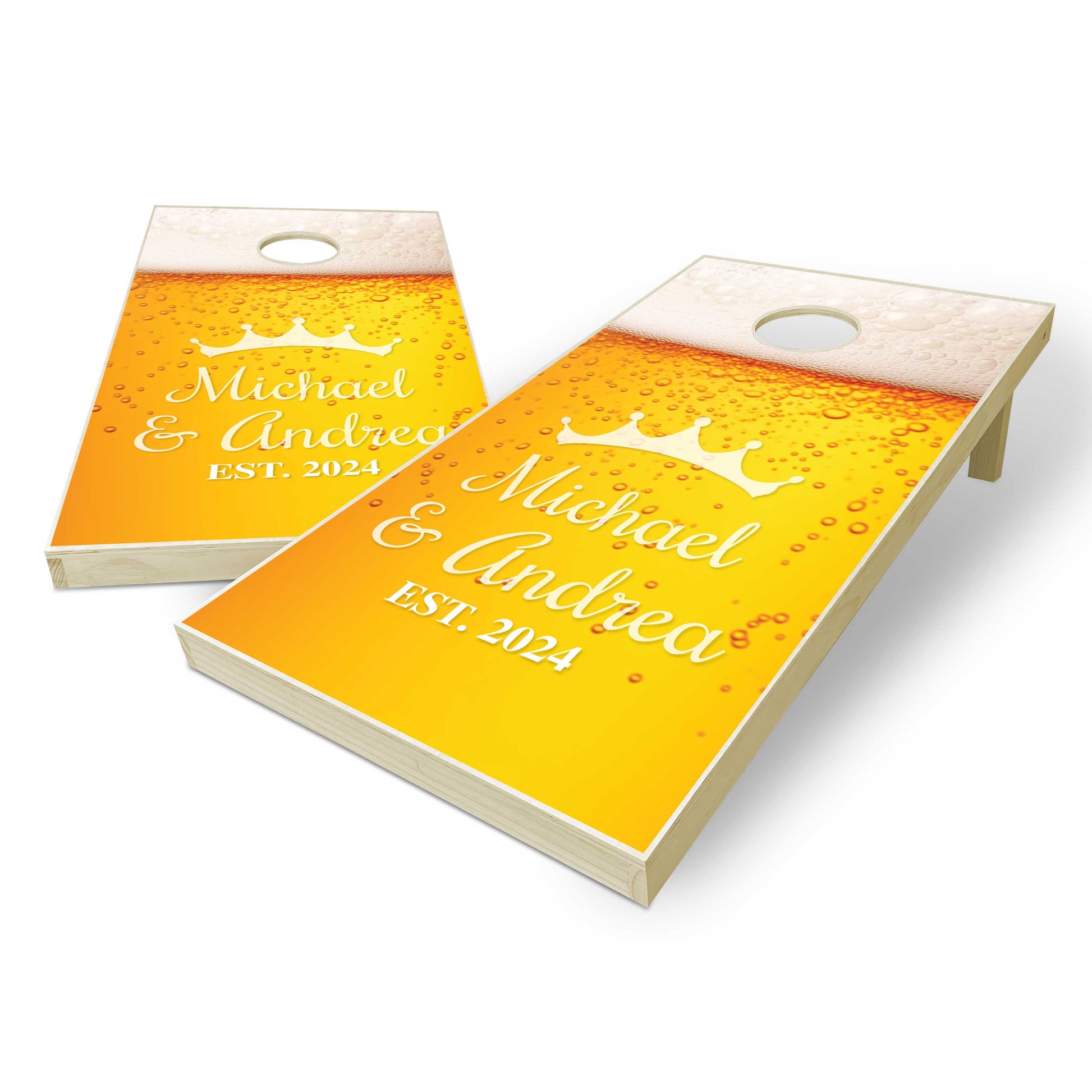 Show off at your next event with this specialty-designed Customized Draft Beer Cornhole party game set!
