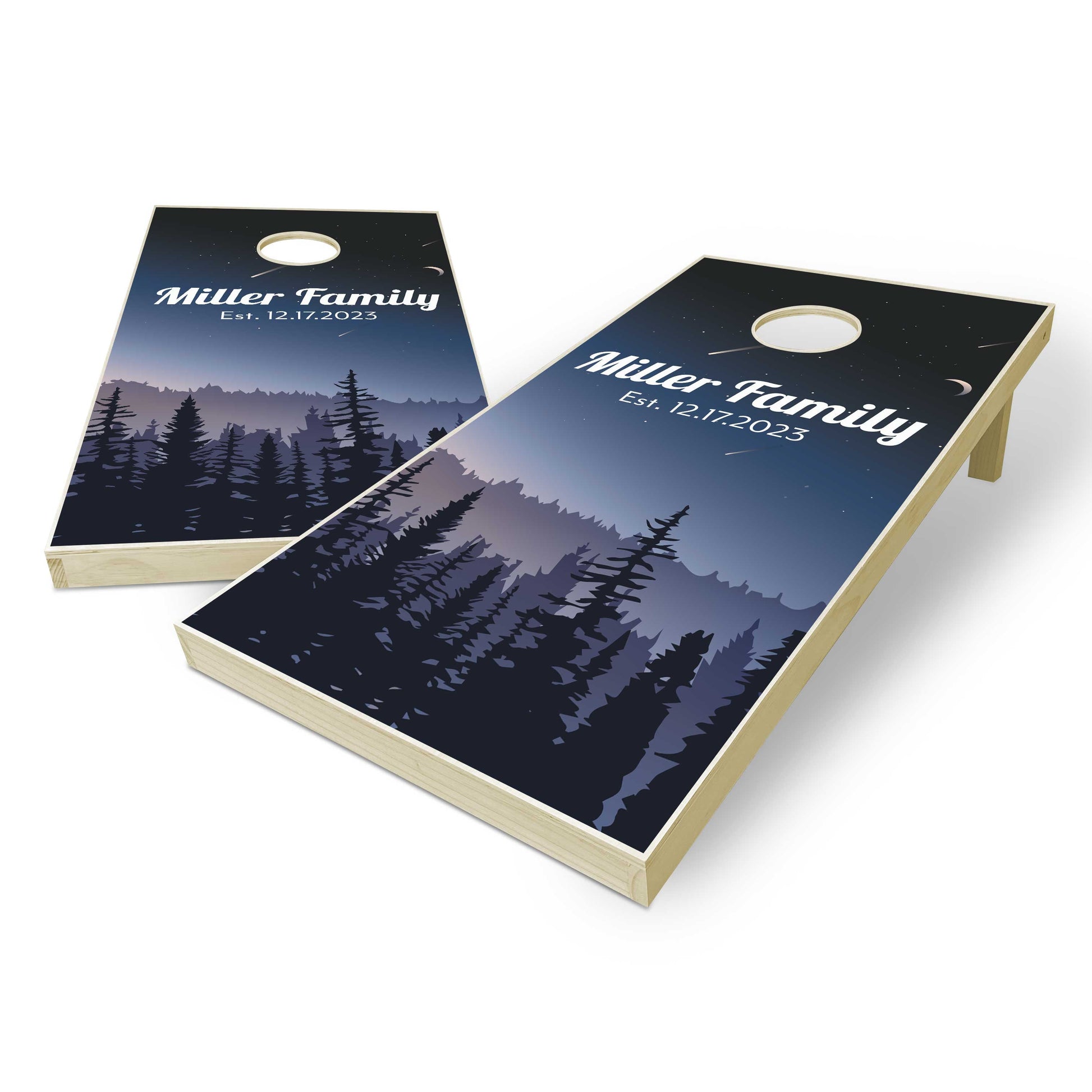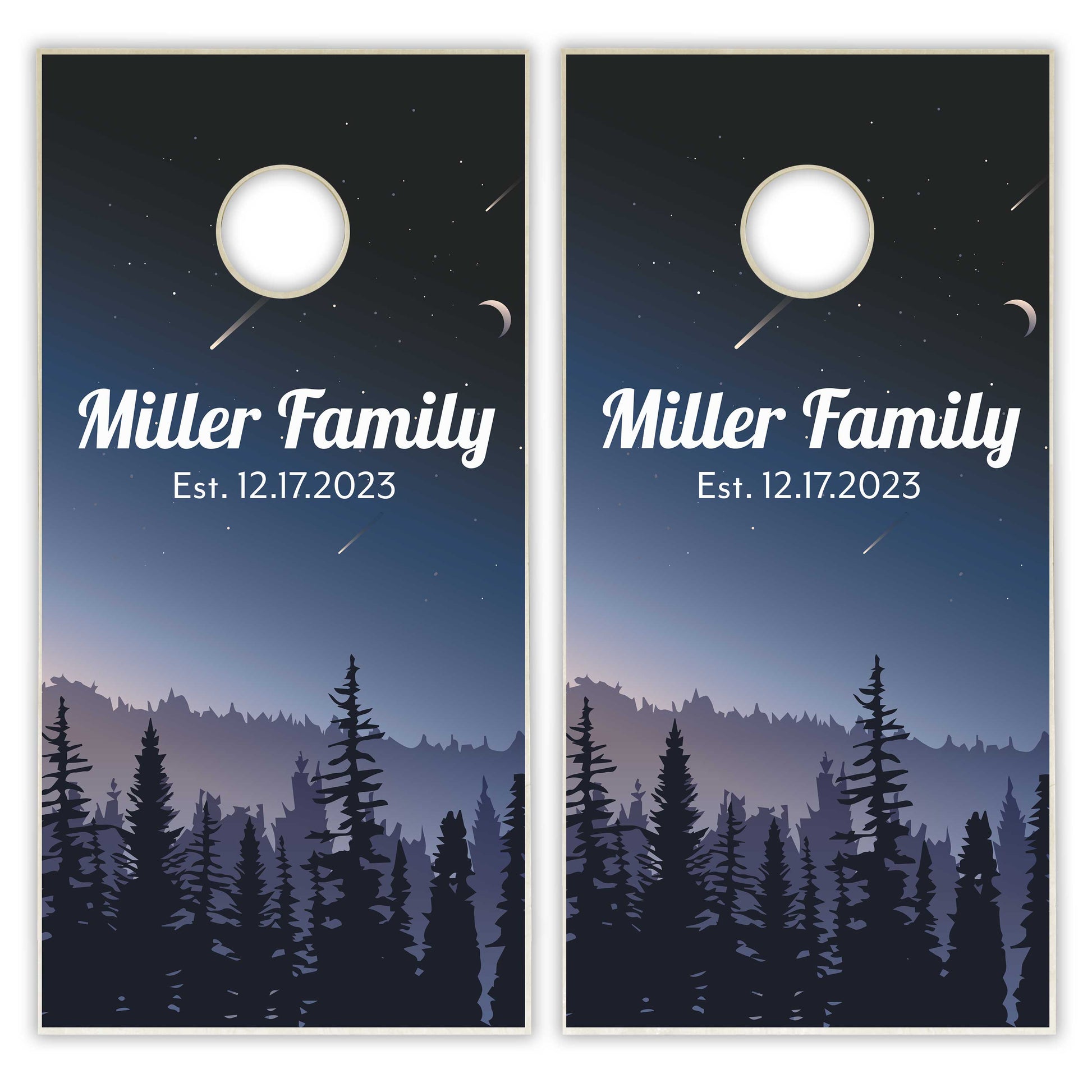 Show off at your next event with this specialty-designed Customized Family Name Woods Cornhole party game set!