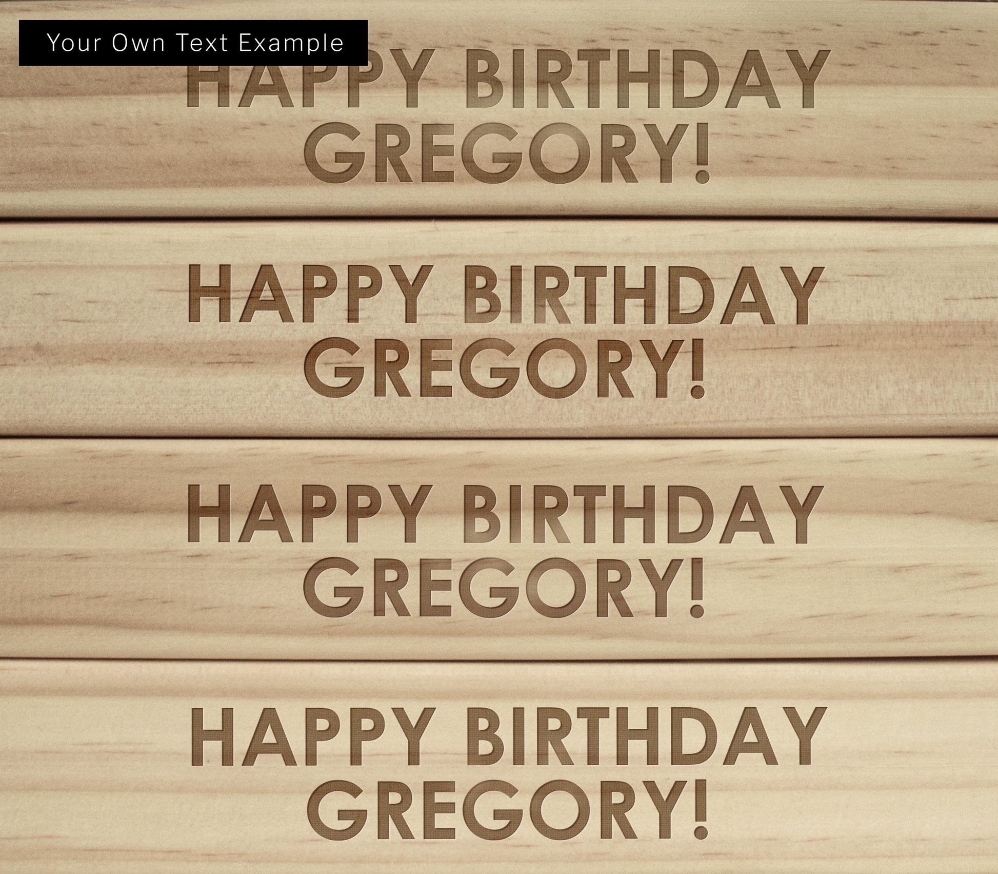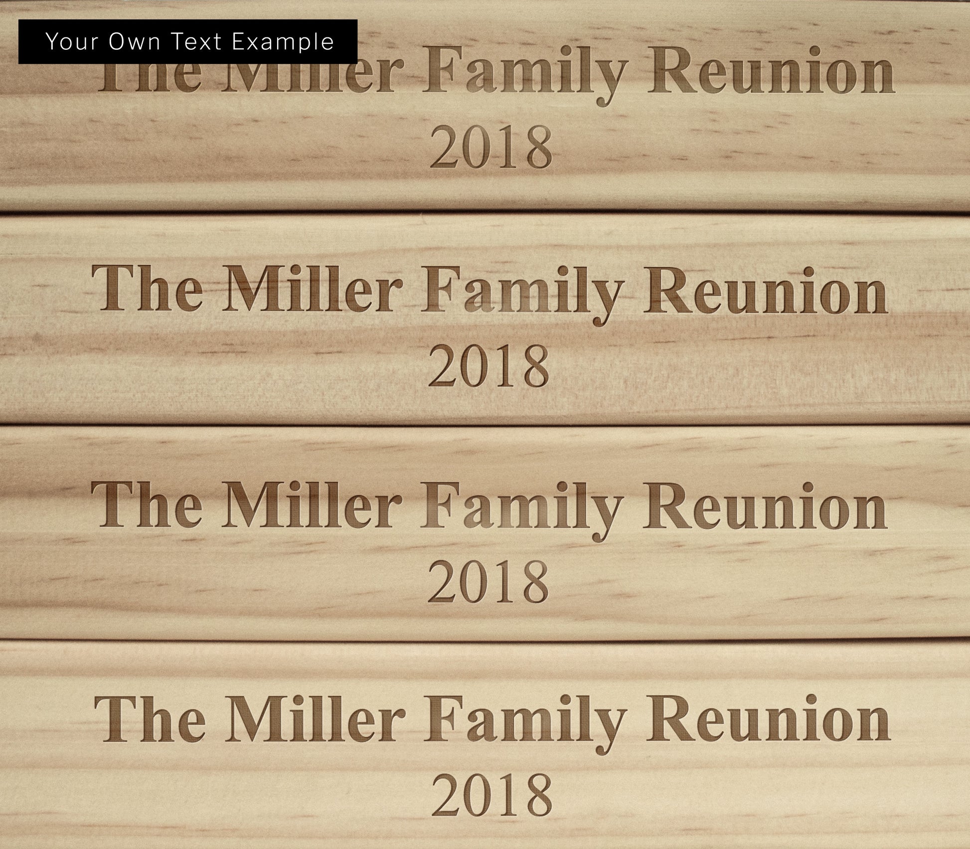 We engrave your message on one side of 24 of the 56 timber pieces.