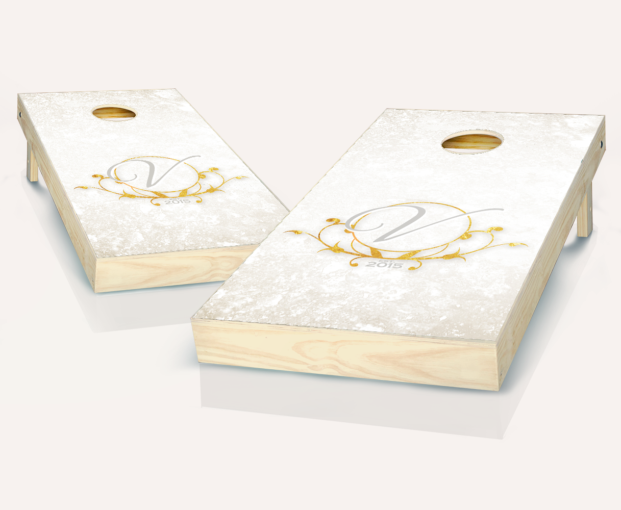 Customized Gold Leaf Wedding Cornhole Set