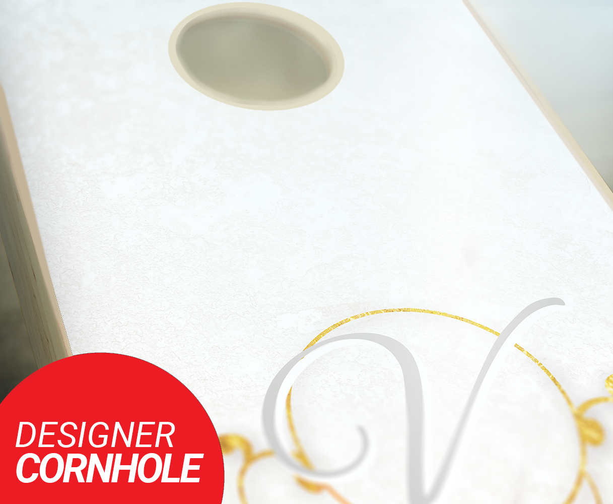 Play cornhole at your reception with this customized cornhole set! The decal is printed vinyl and finished with a clear coat polyurethane to protect your boards for years. This 24"x48" set of cornhole boards comes with folding legs and you can add a full set of 8 standard cornhole bags. The boards are completely sanded for a smooth finish. These boards are made of quality 1/2" plywood and will hold up to anything you throw at them. Great for a BBQ, tailgating, camping, or just a relaxing day in the sun. Our boards are ACA Certified!