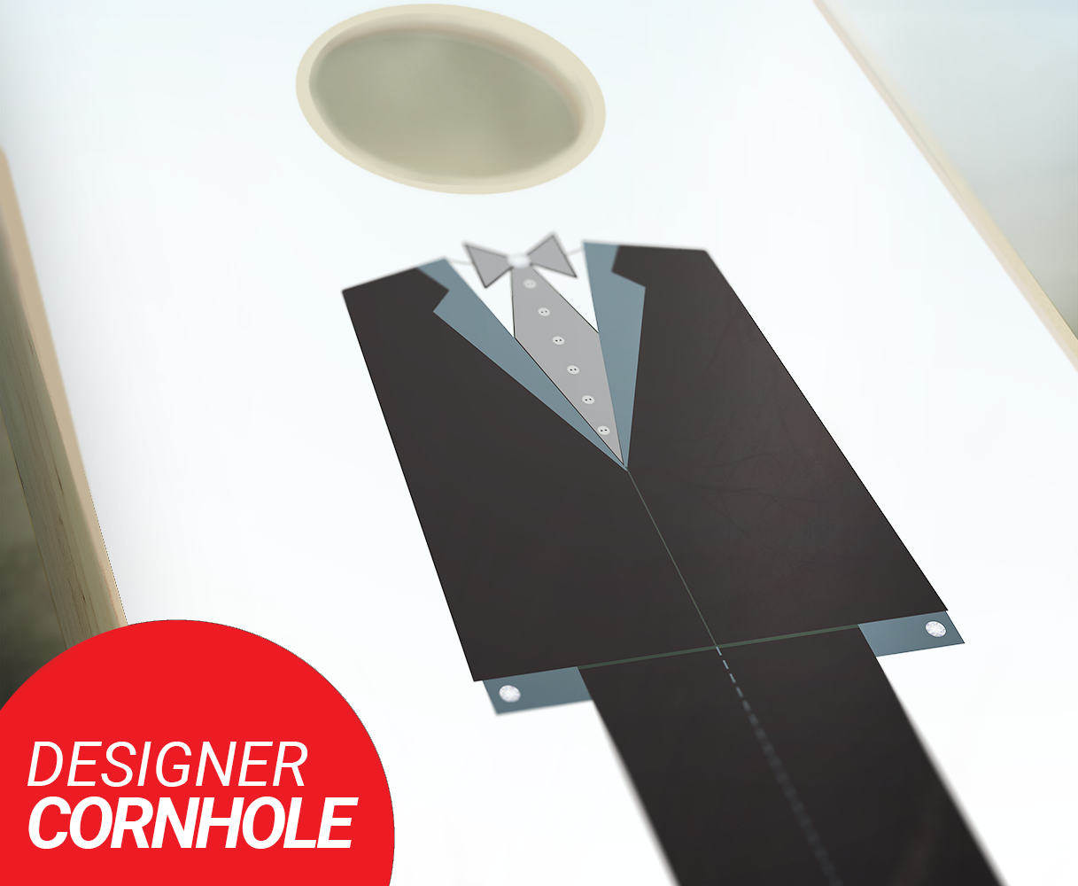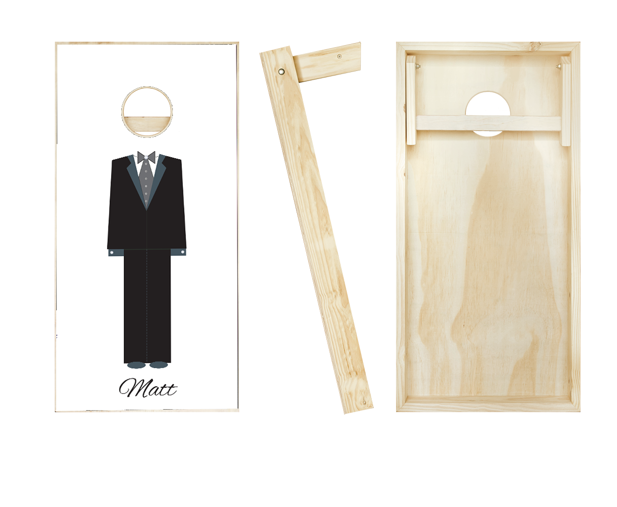 Play with the guys during your getaway with this custom bachelor party cornhole! The decal is printed vinyl and finished with a clear coat polyurethane to protect your boards for years. This 24"x48" set of cornhole boards comes with folding legs and you can add a full set of 8 standard cornhole bags. The boards are completely sanded for a smooth finish. These boards are made of quality 1/2" plywood and will hold up to anything you throw at them. Great for a BBQ, tailgating, camping, or just a relaxing day in the sun. Our party game boards are ACA Certified!