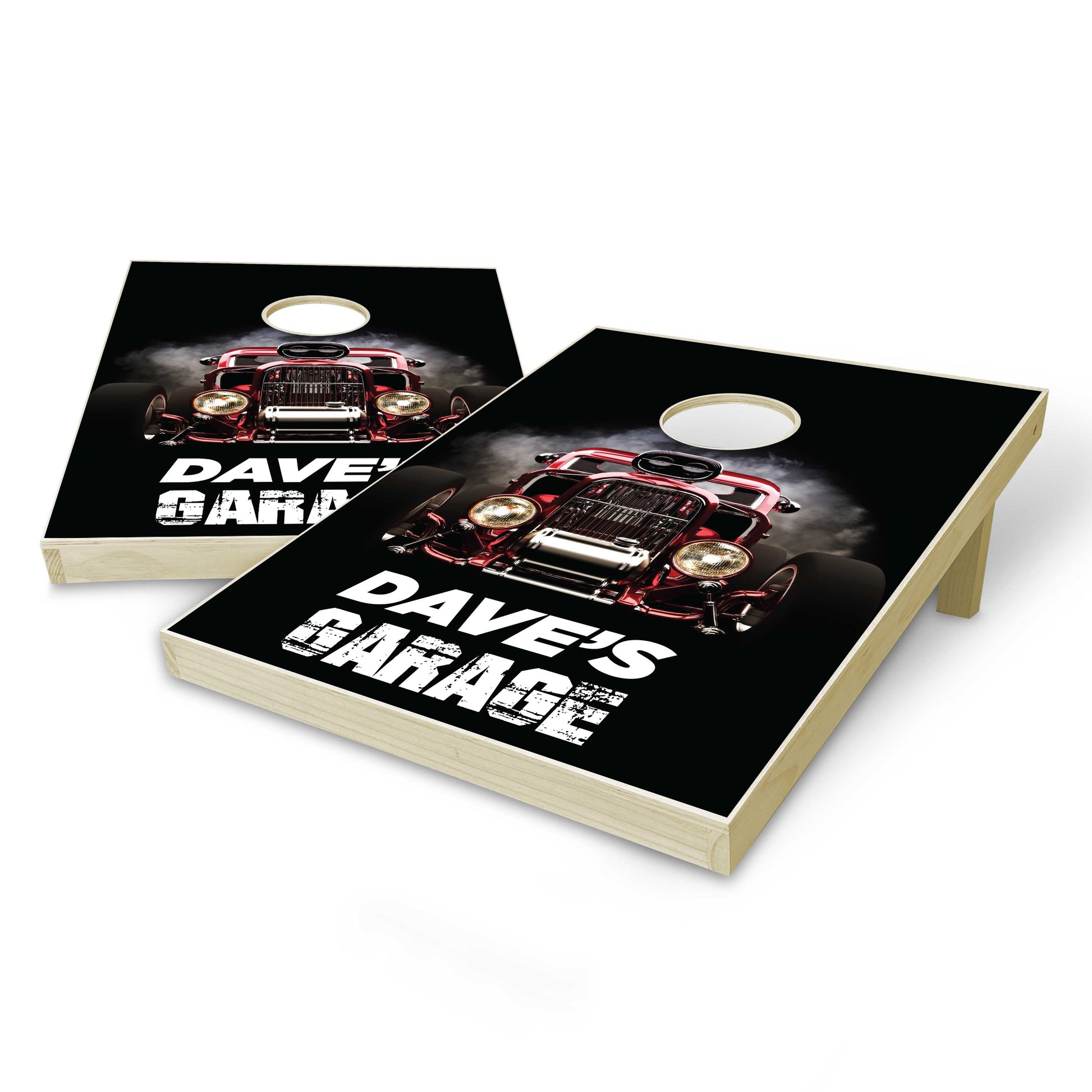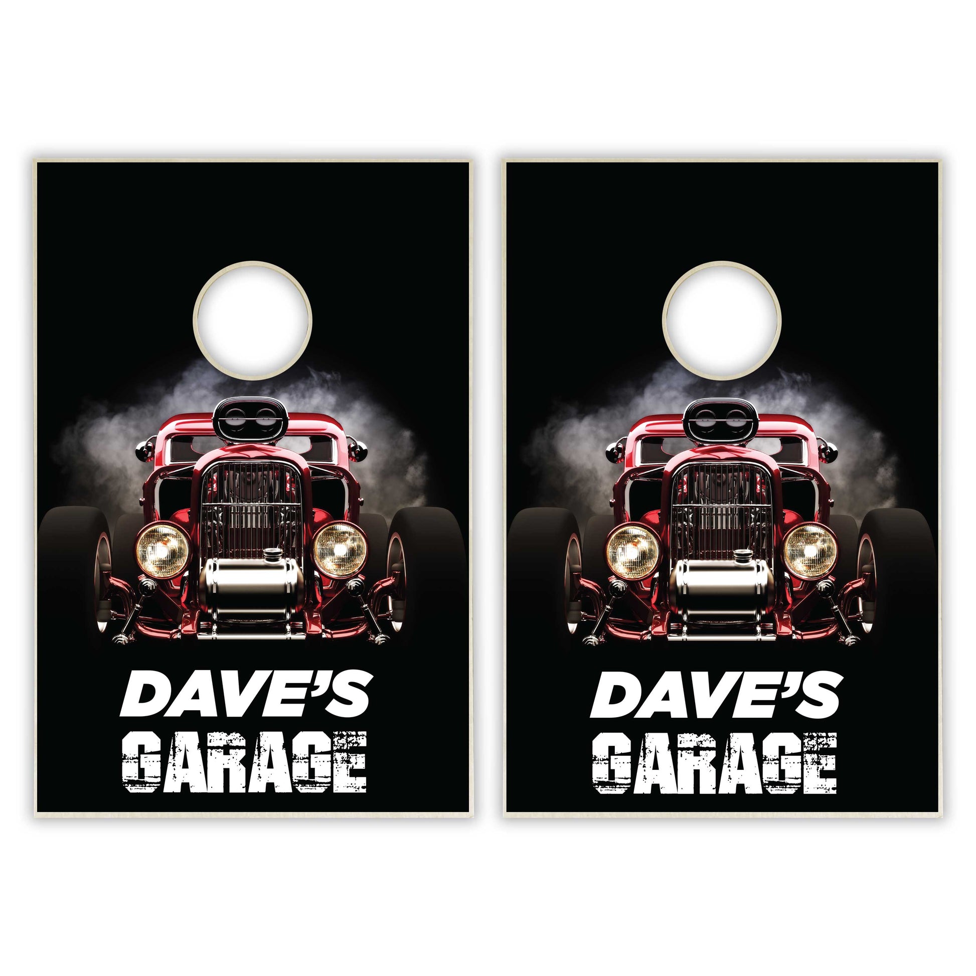 Show off at your next event with this specialty-designed Customized Hot Rod Cornhole party game set!
