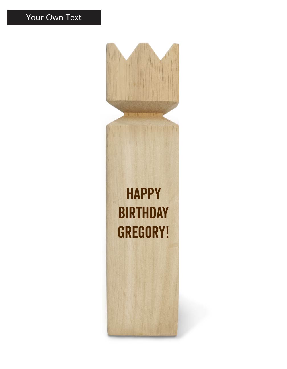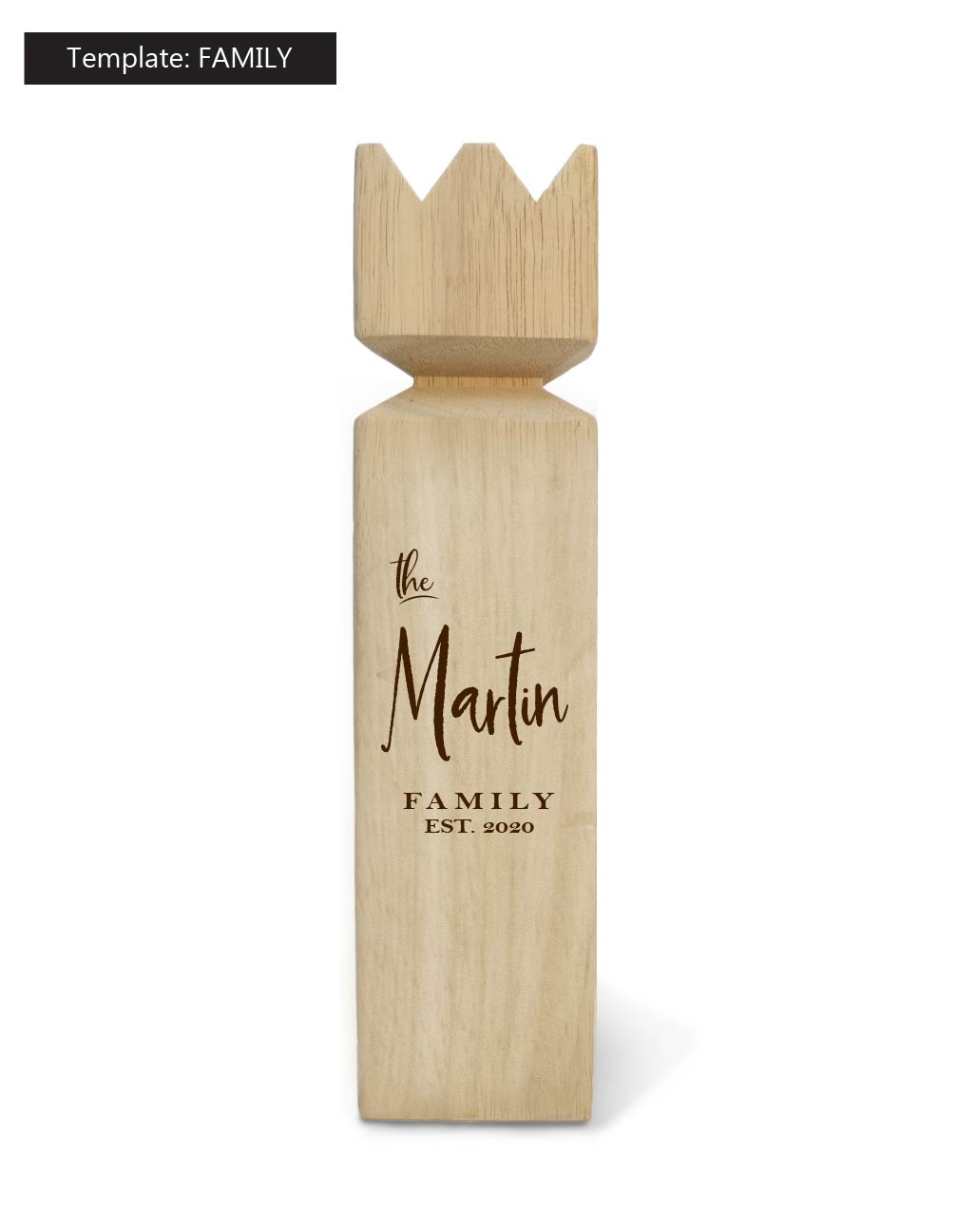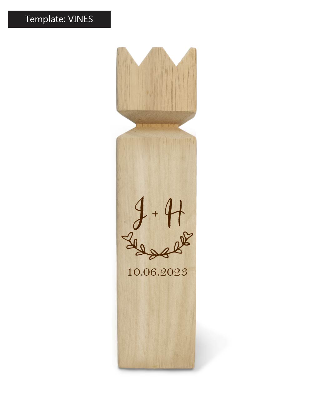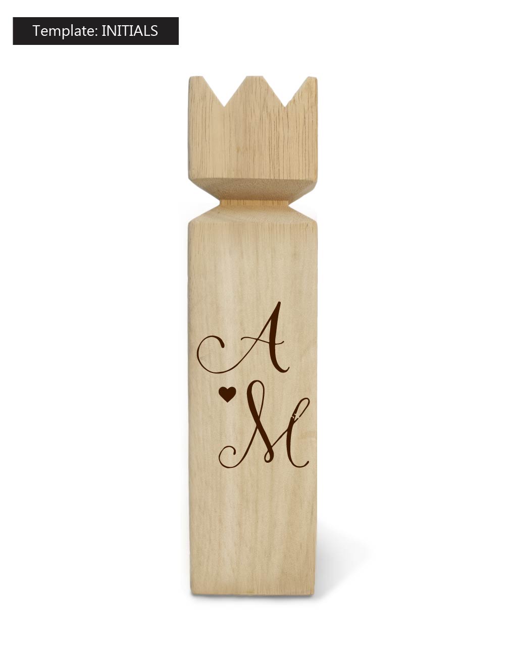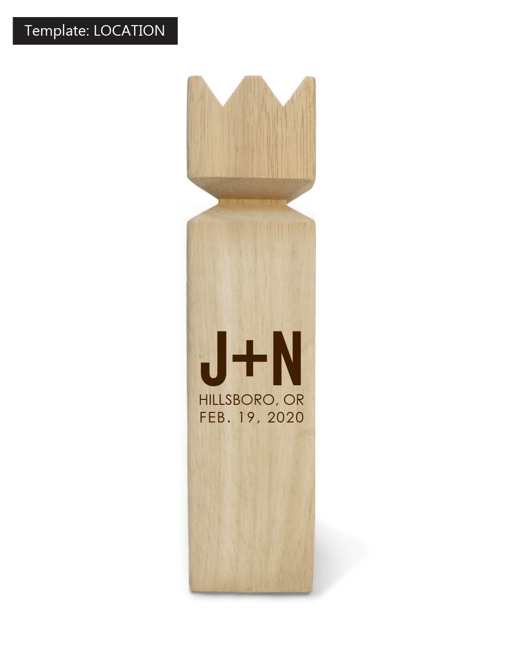 Engravings come on the King, 10 Kubb blocks, and the carrying case.