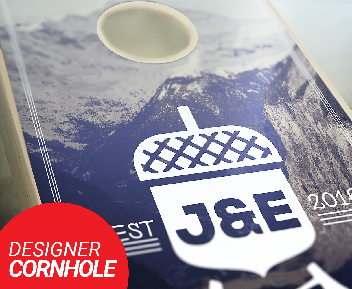 Play cornhole at your reception with this customized cornhole set! The decal is printed vinyl and finished with a clear coat polyurethane to protect your boards for years. This 24"x48" set of cornhole boards comes with folding legs and you can add a full set of 8 standard cornhole bags. The boards are completely sanded for a smooth finish. These boards are made of quality 1/2" plywood and will hold up to anything you throw at them. Great for a BBQ, tailgating, camping, or just a relaxing day in the sun. Our boards are ACA Certified!