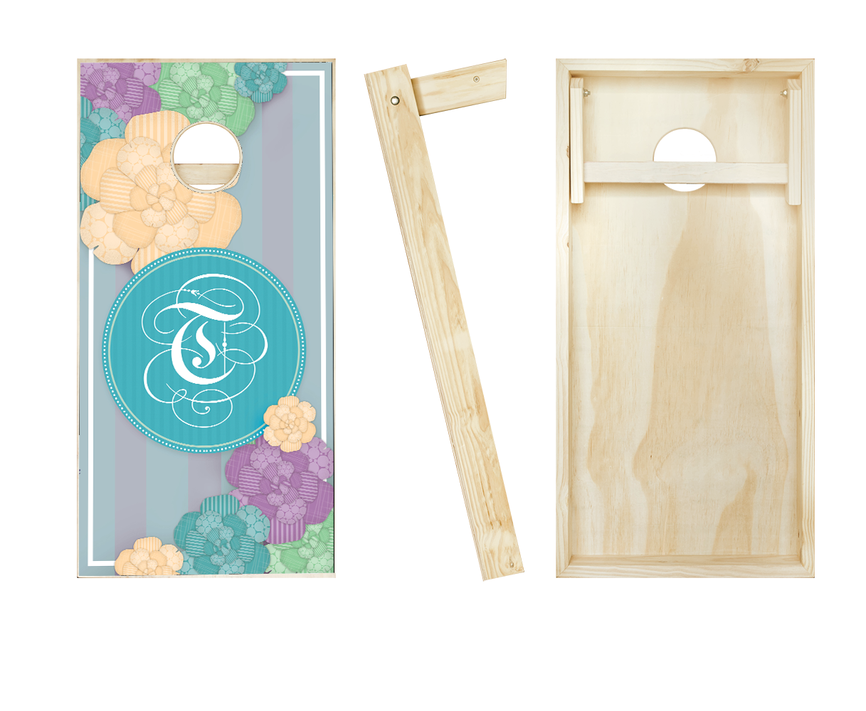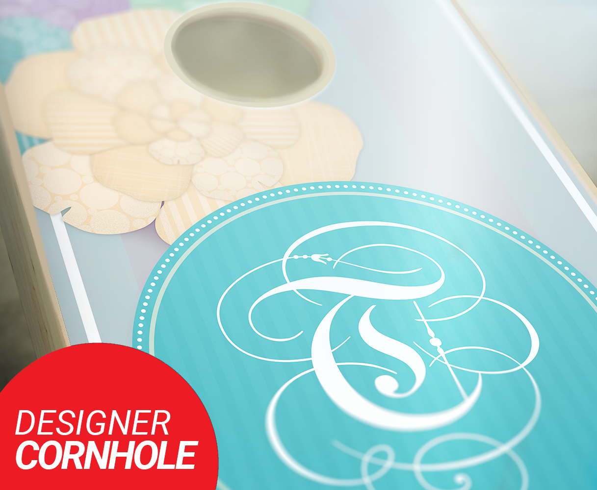 Play cornhole at your reception with this customized cornhole set! The decal is printed vinyl and finished with a clear coat polyurethane to protect your boards for years. This 24"x48" set of cornhole boards comes with folding legs and you can add a full set of 8 standard cornhole bags. The boards are completely sanded for a smooth finish. These boards are made of quality 1/2" plywood and will hold up to anything you throw at them. Great for a BBQ, tailgating, camping, or just a relaxing day in the sun. Our boards are ACA Certified!