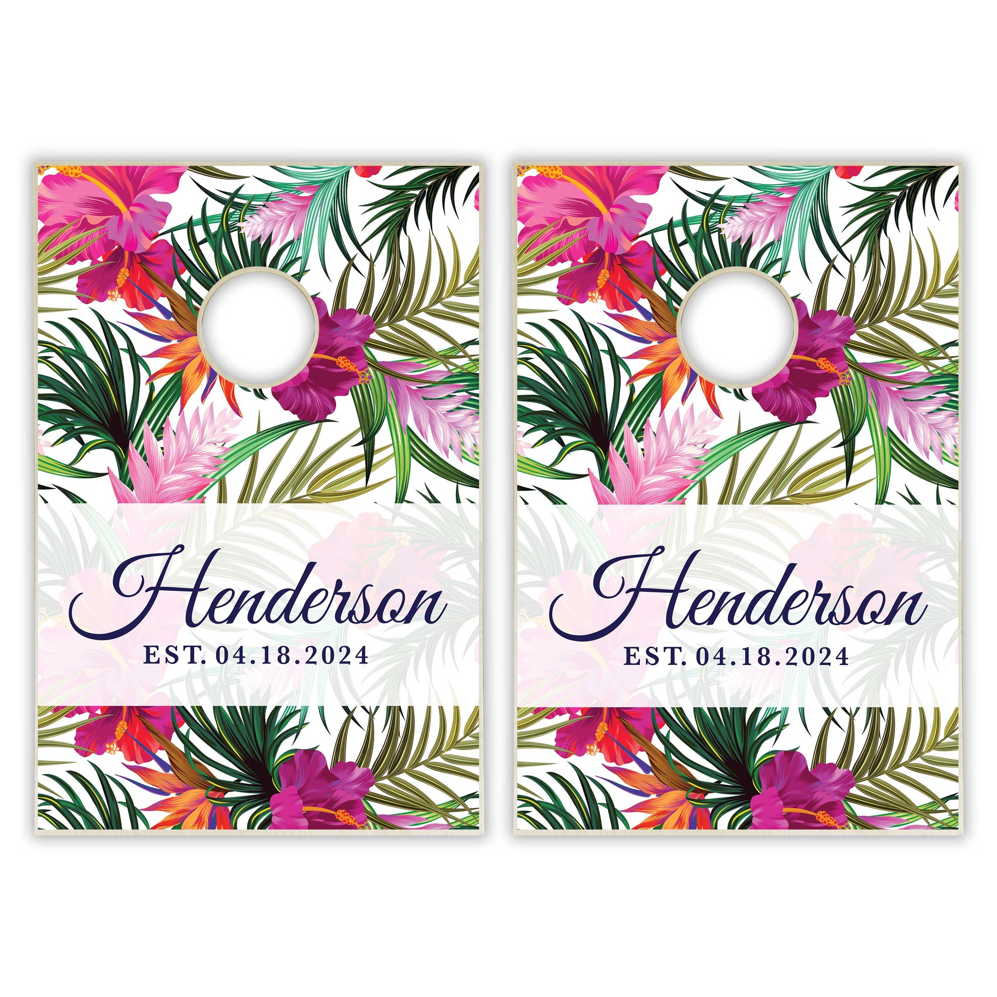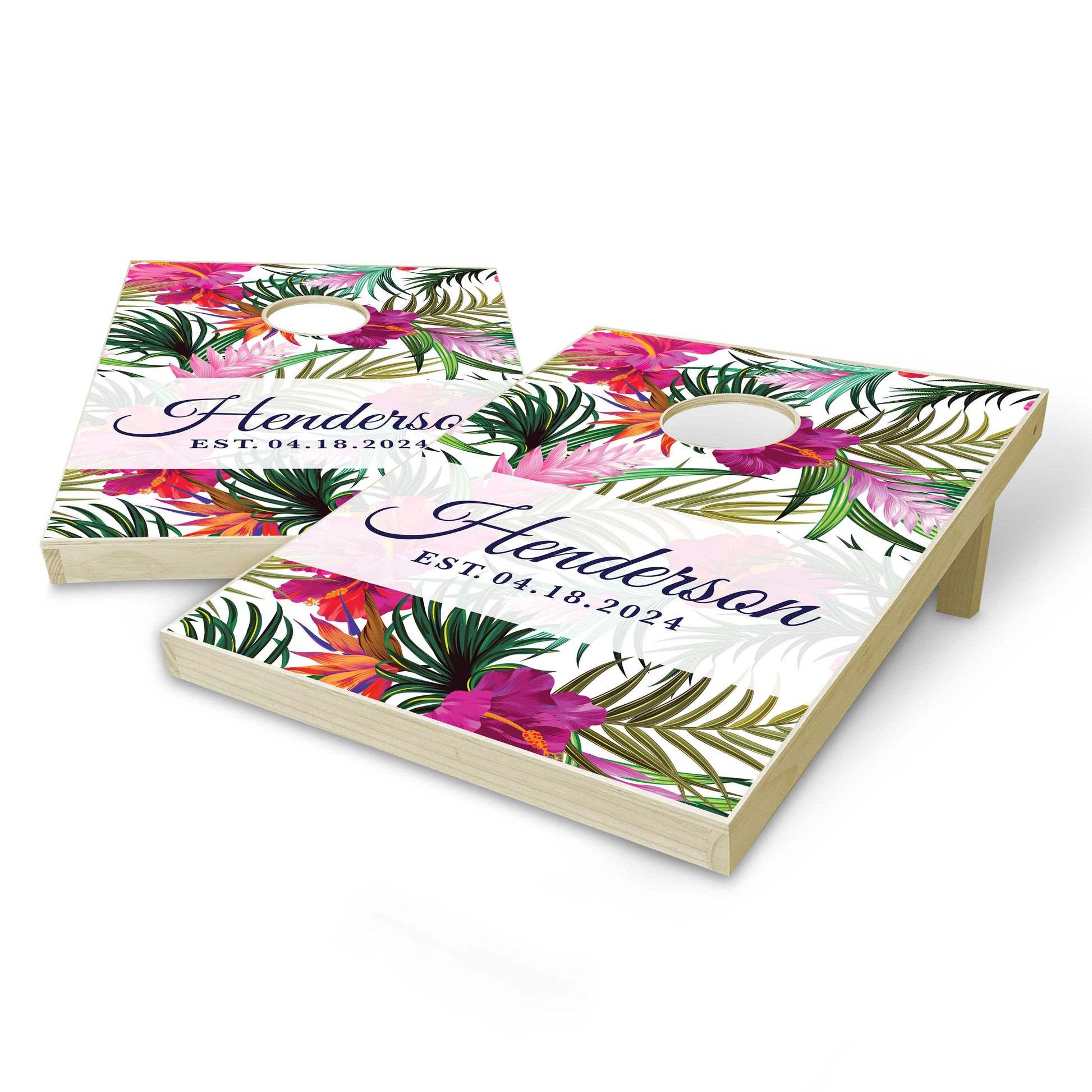 Customized Pink Floral Wedding Tailgate Cornhole Set