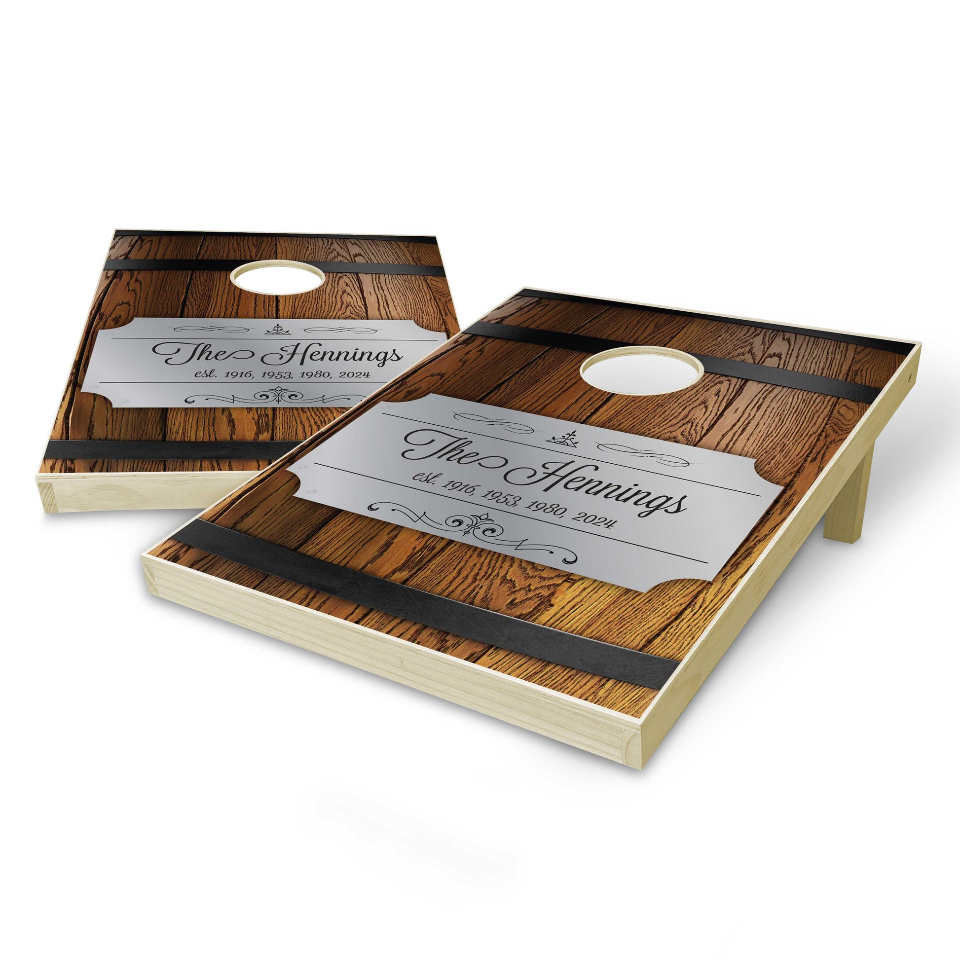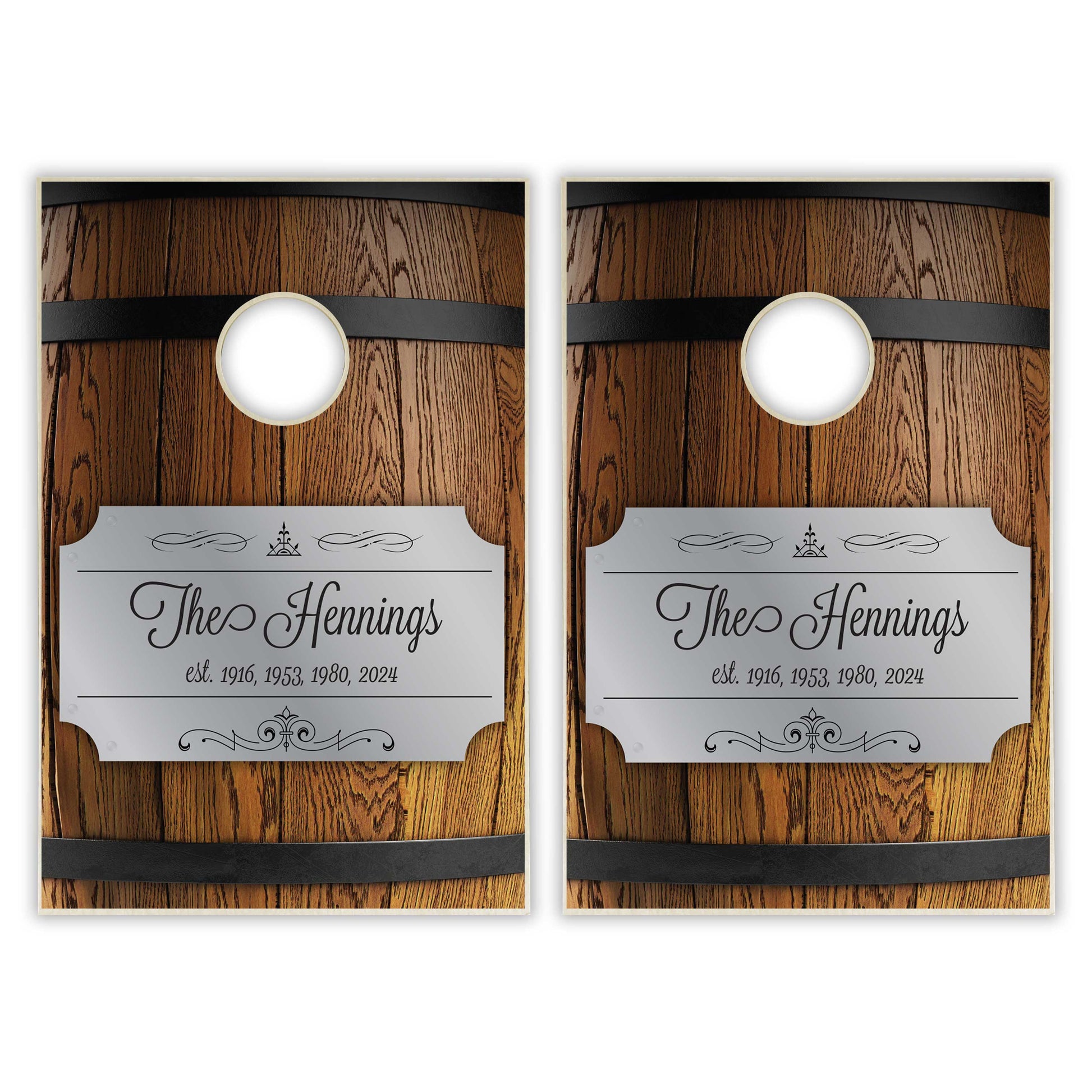 Show off at your next event with this specialty-designed Customized Wine Barrell Cornhole party game set!