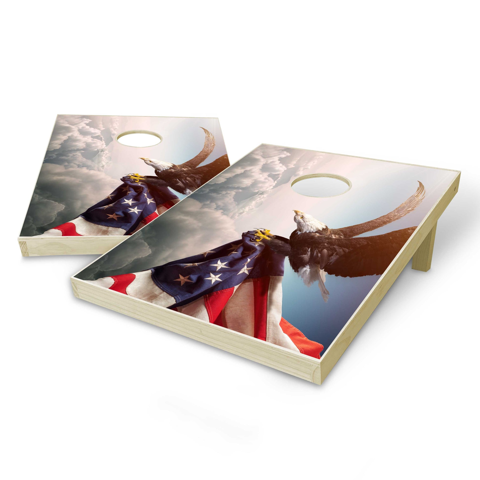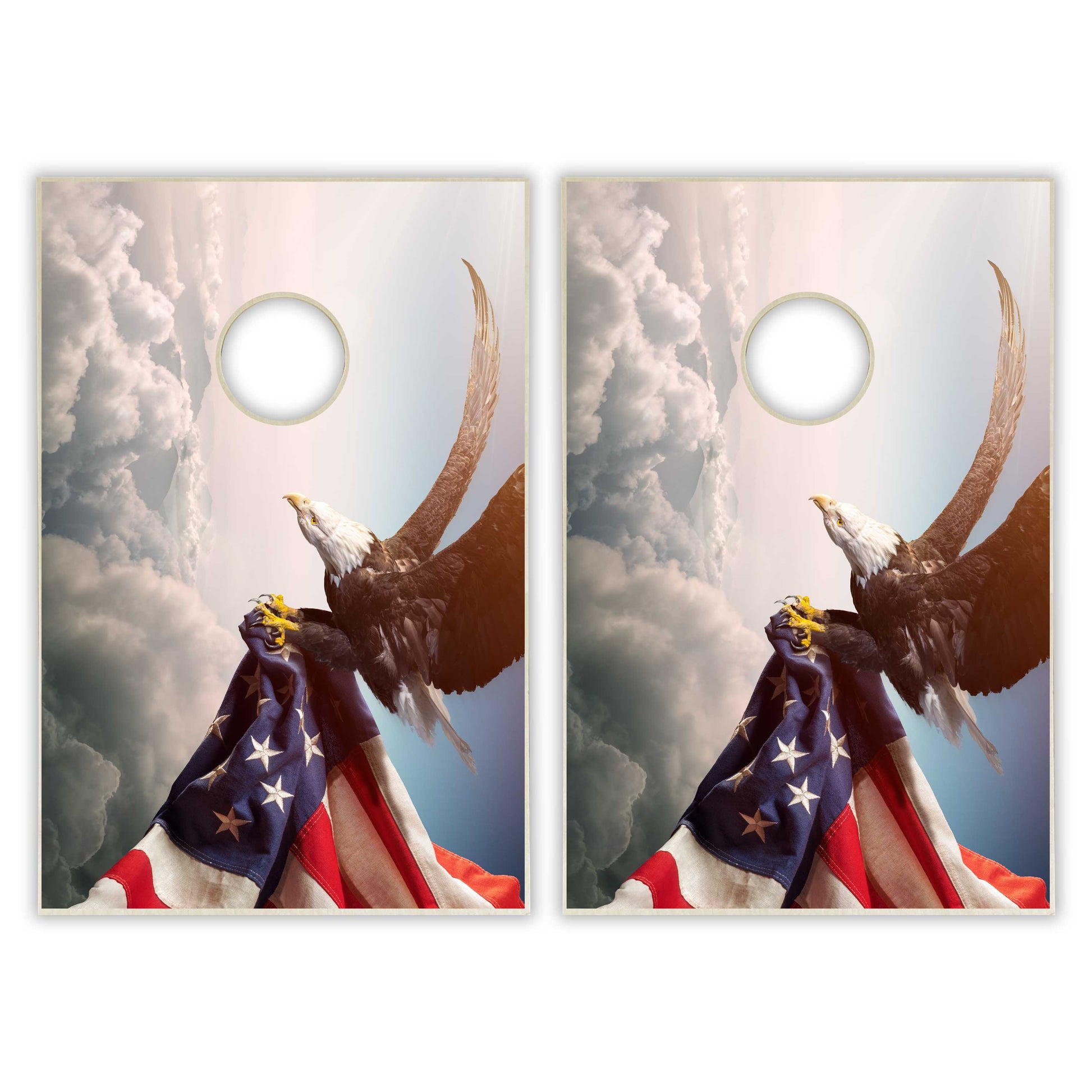 Show off at your next event with this specialty-designed Eagle Flag Cornhole party game set!