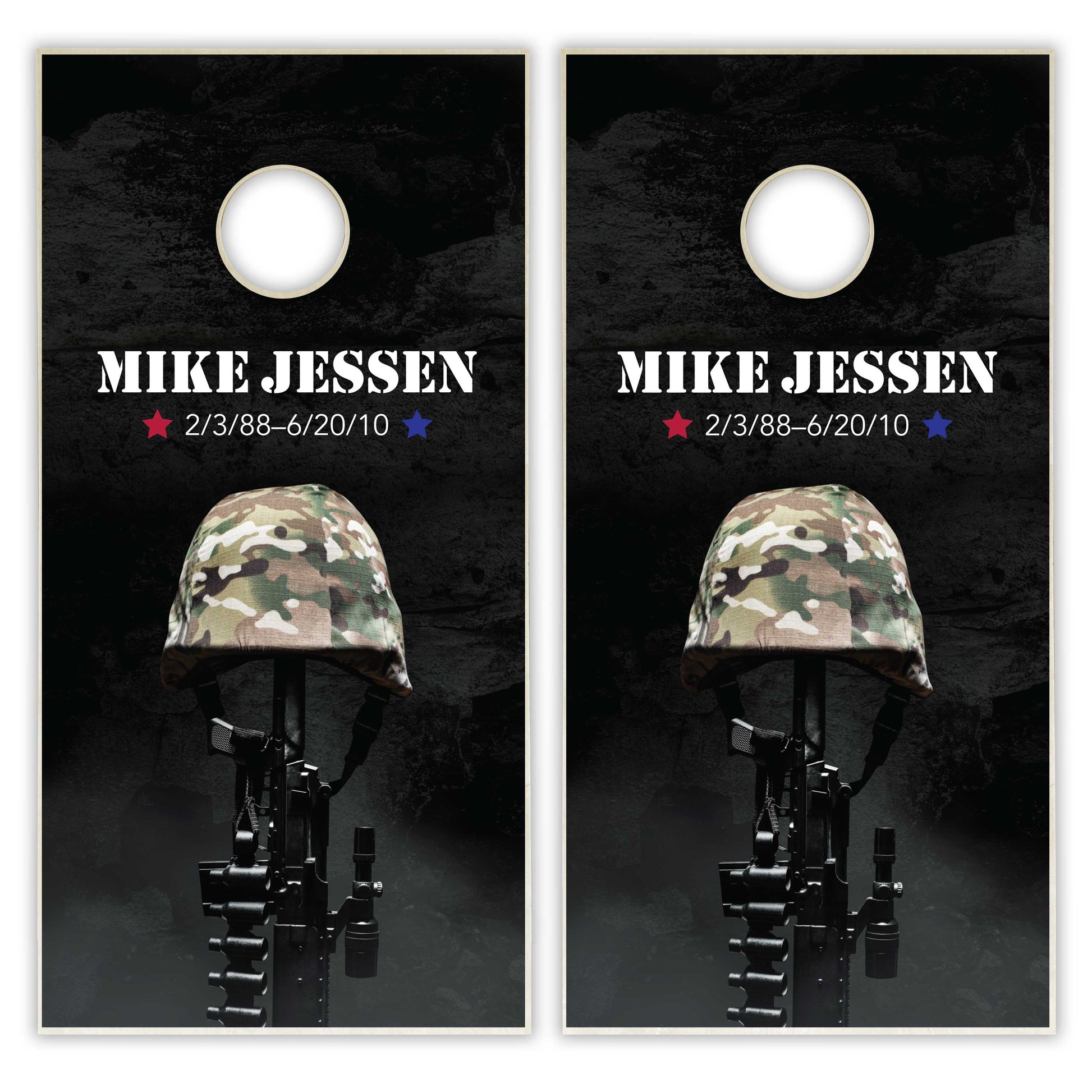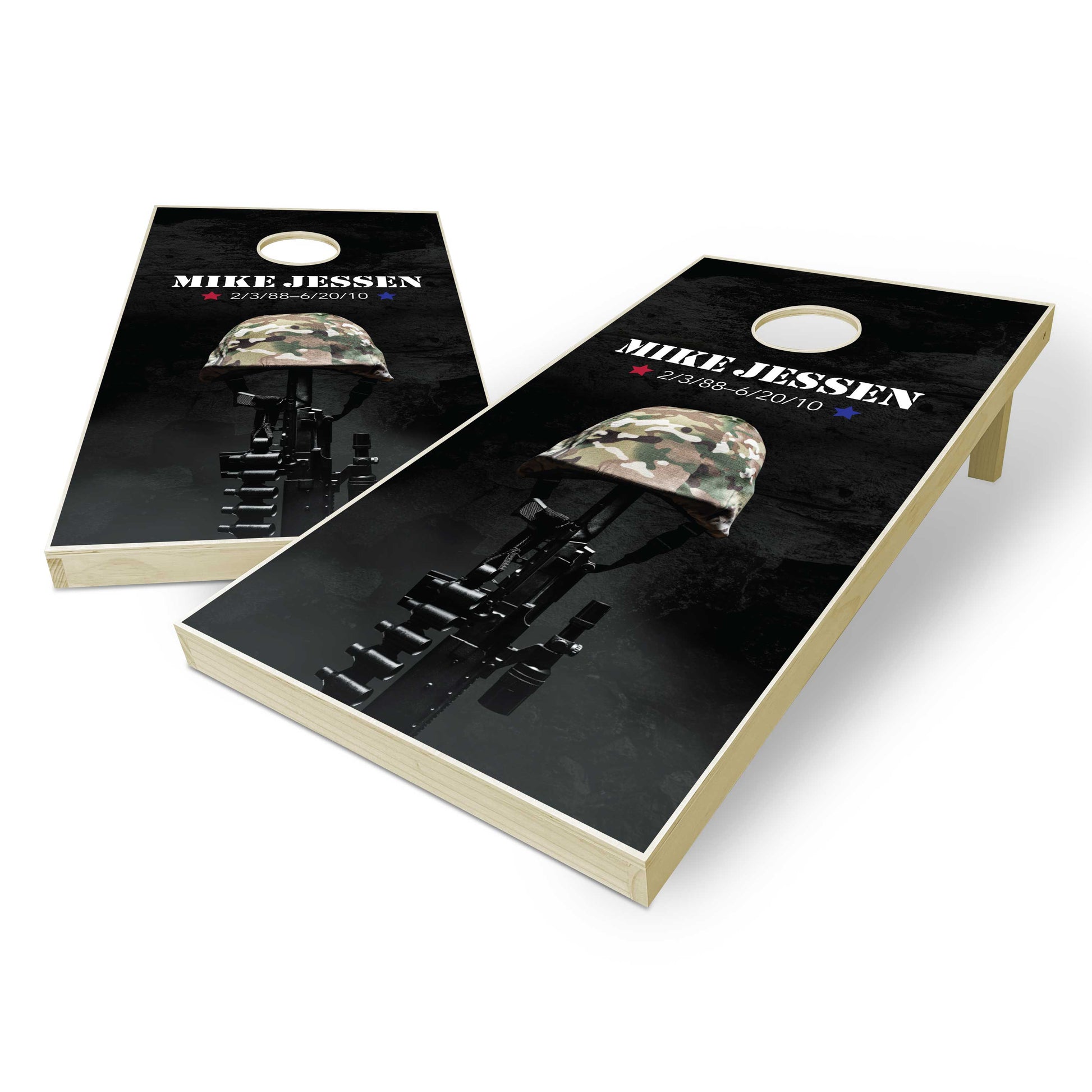 Commemorate our country's heroes with this specialty-designed Customized Fallen Soldier Cornhole game set!