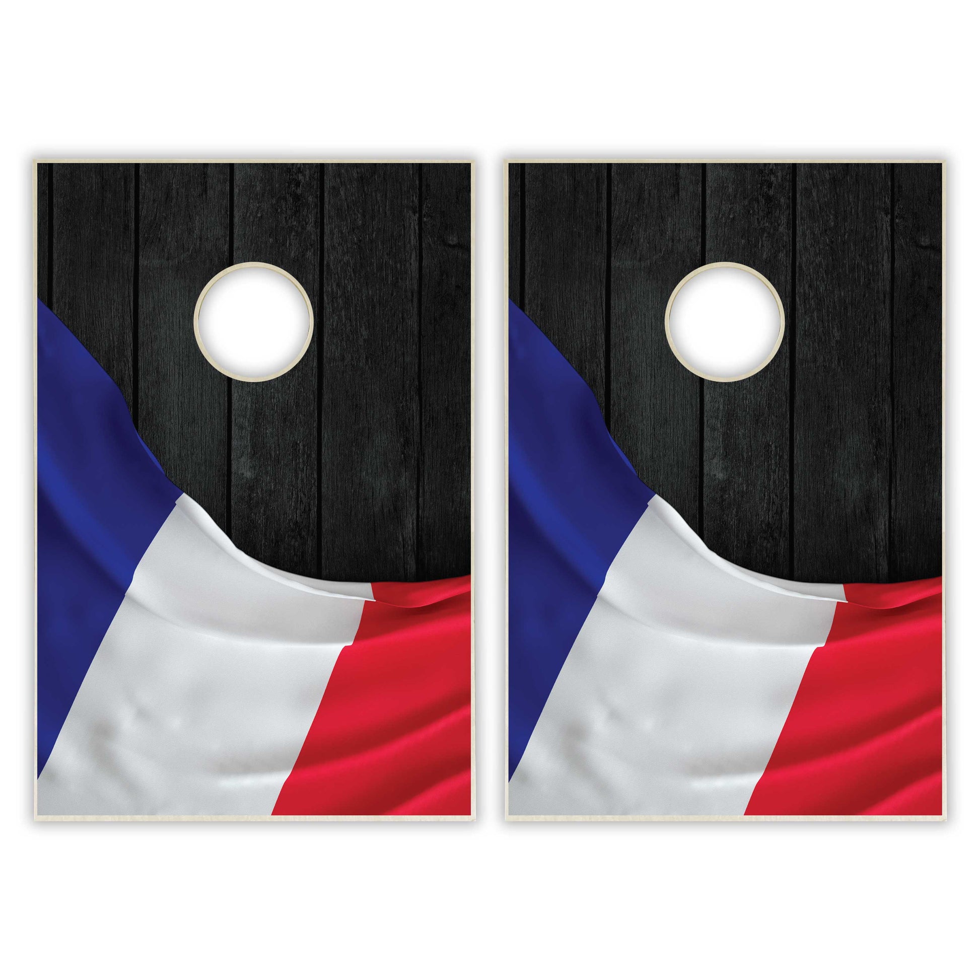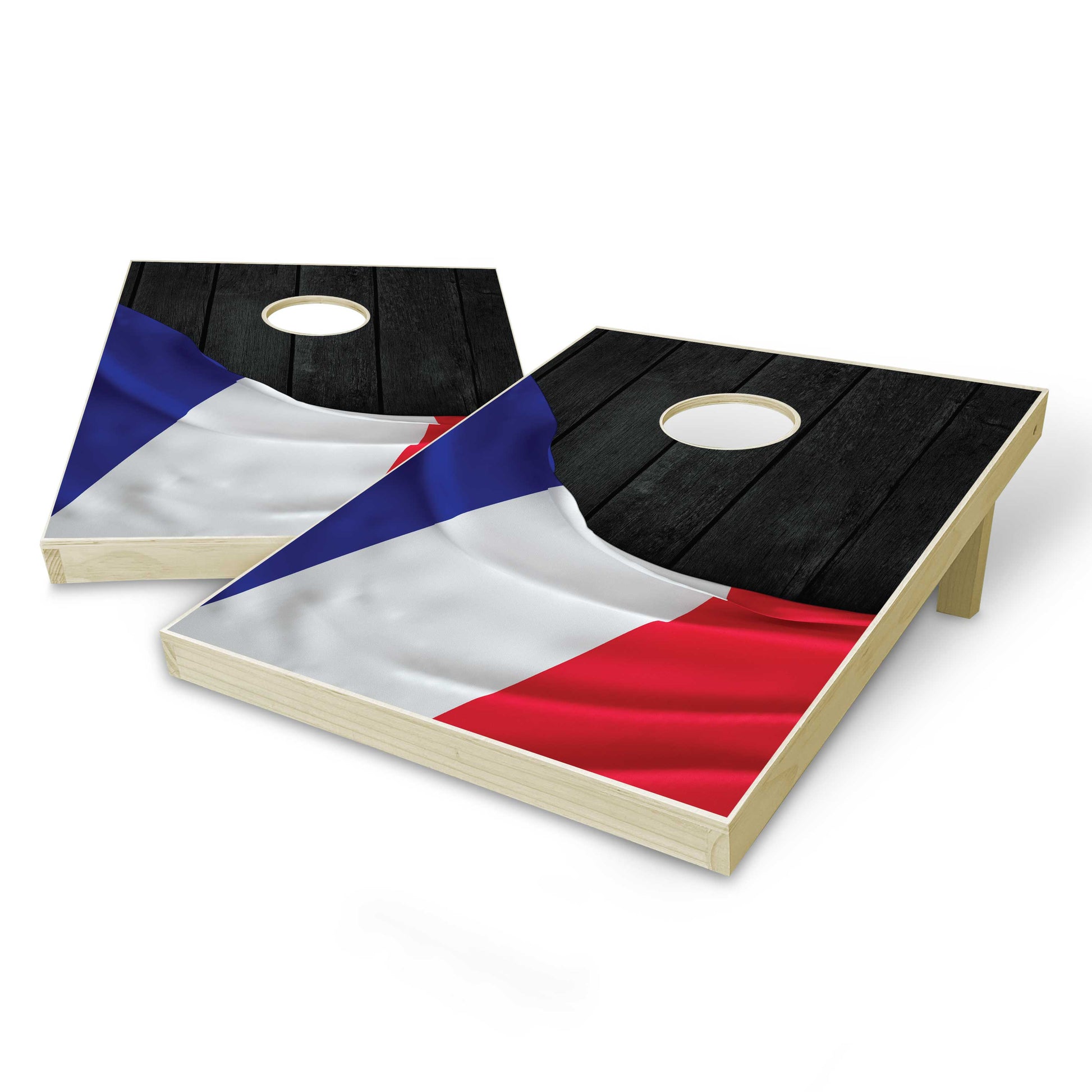 Show off at your next event with this specialty-designed France Flag Cornhole party game set!
