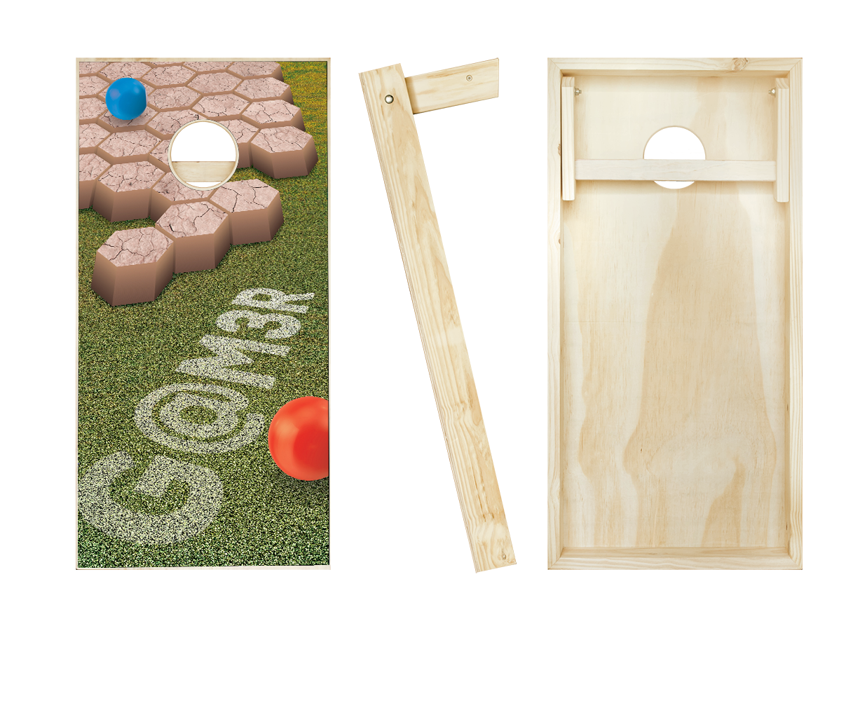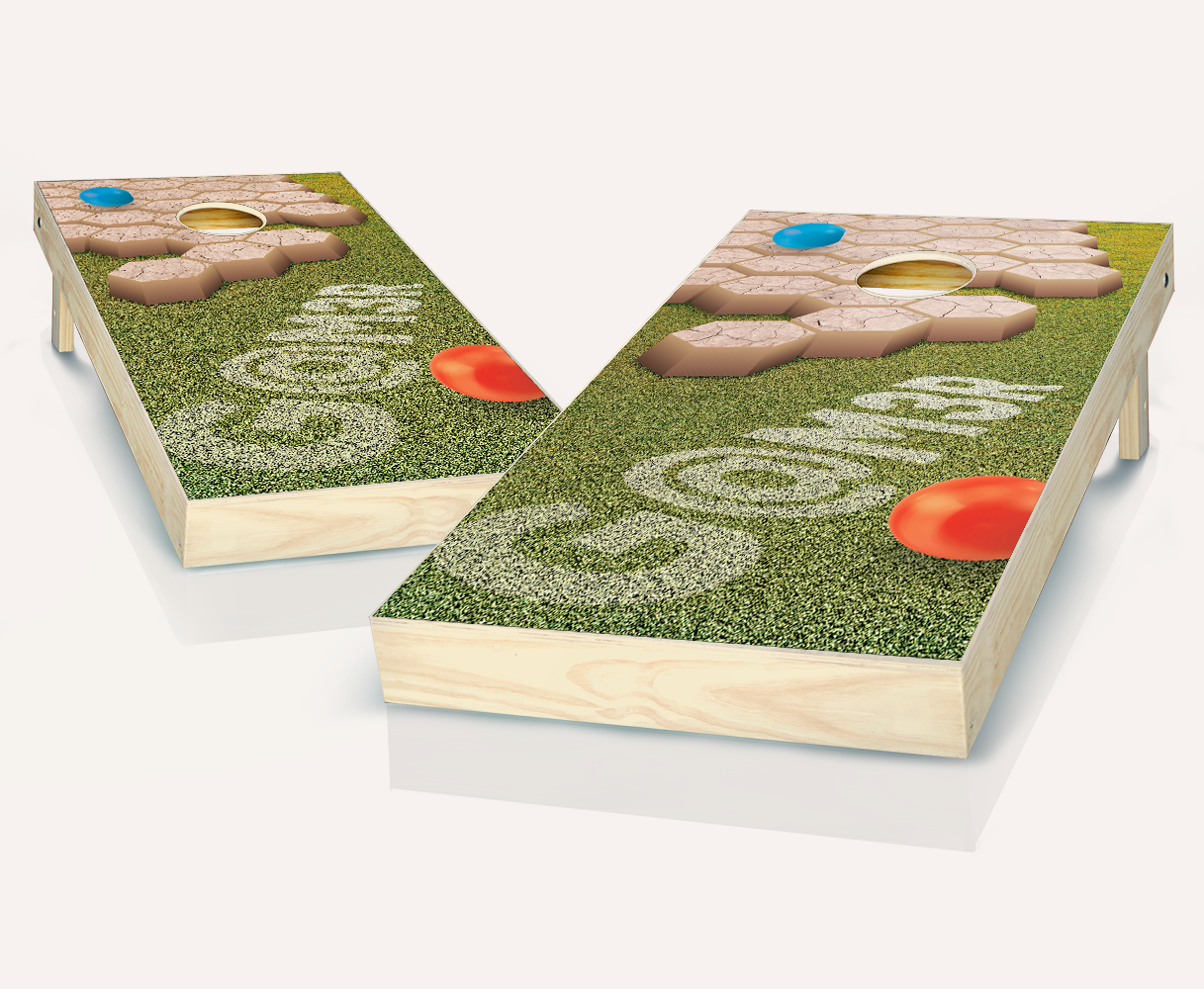 Show off at your next event with this specialty designed cornhole set! The decal is printed vinyl and finished with a clear coat polyurethane to protect your boards for years. This 24"x48" set of cornhole boards comes with folding legs and you can add a full set of 8 standard cornhole bags. The boards are completely sanded for a smooth finish. These boards are made of quality 1/2" plywood and will hold up to anything you throw at them. Great for a BBQ, tailgating, camping, or just a relaxing day in the sun. Our boards are ACA Certified!