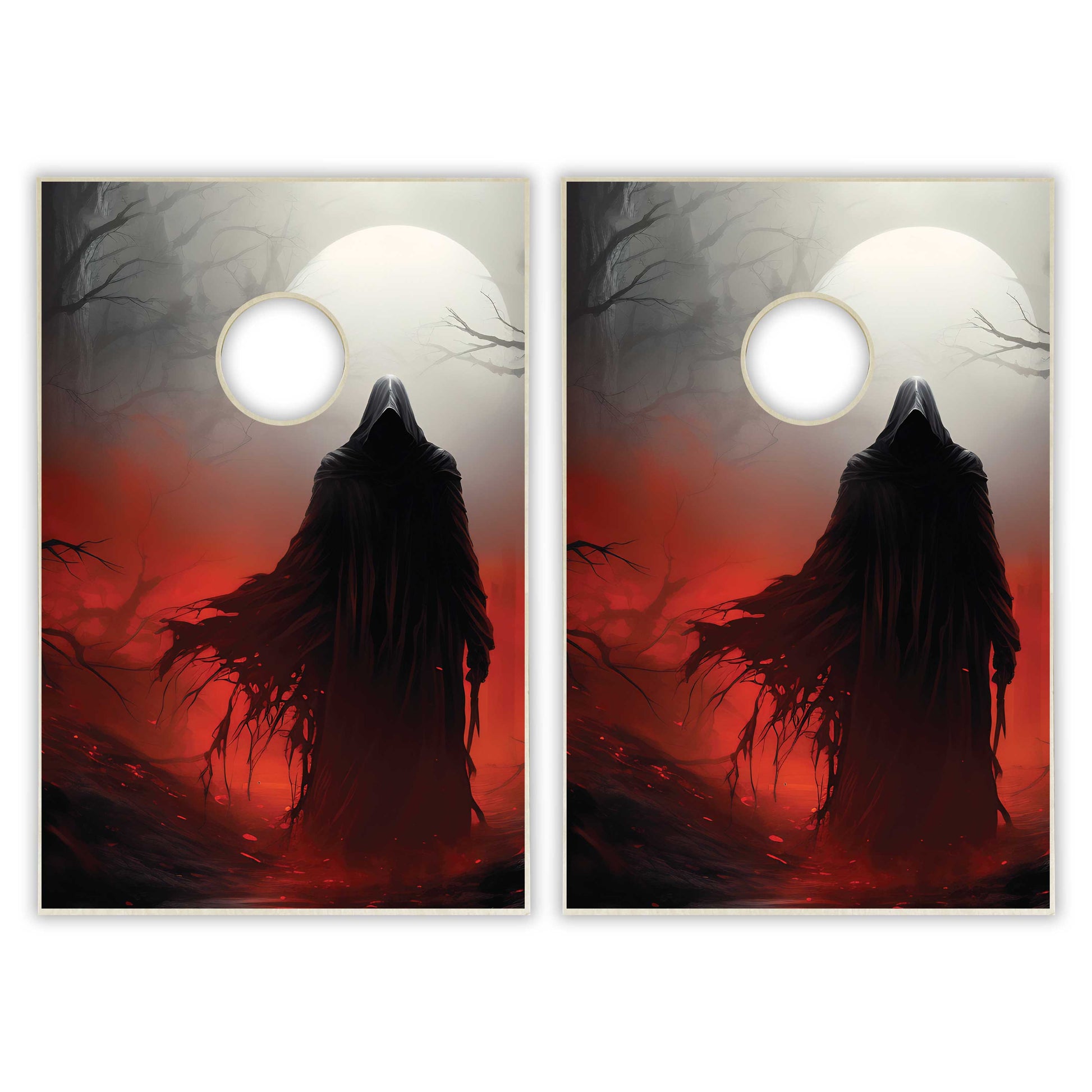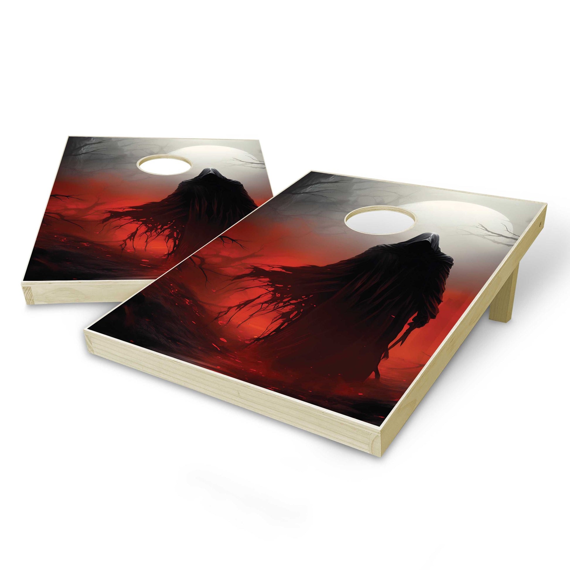 Show off at your next event with this specialty-designed Grim Reaper Cornhole party game set!