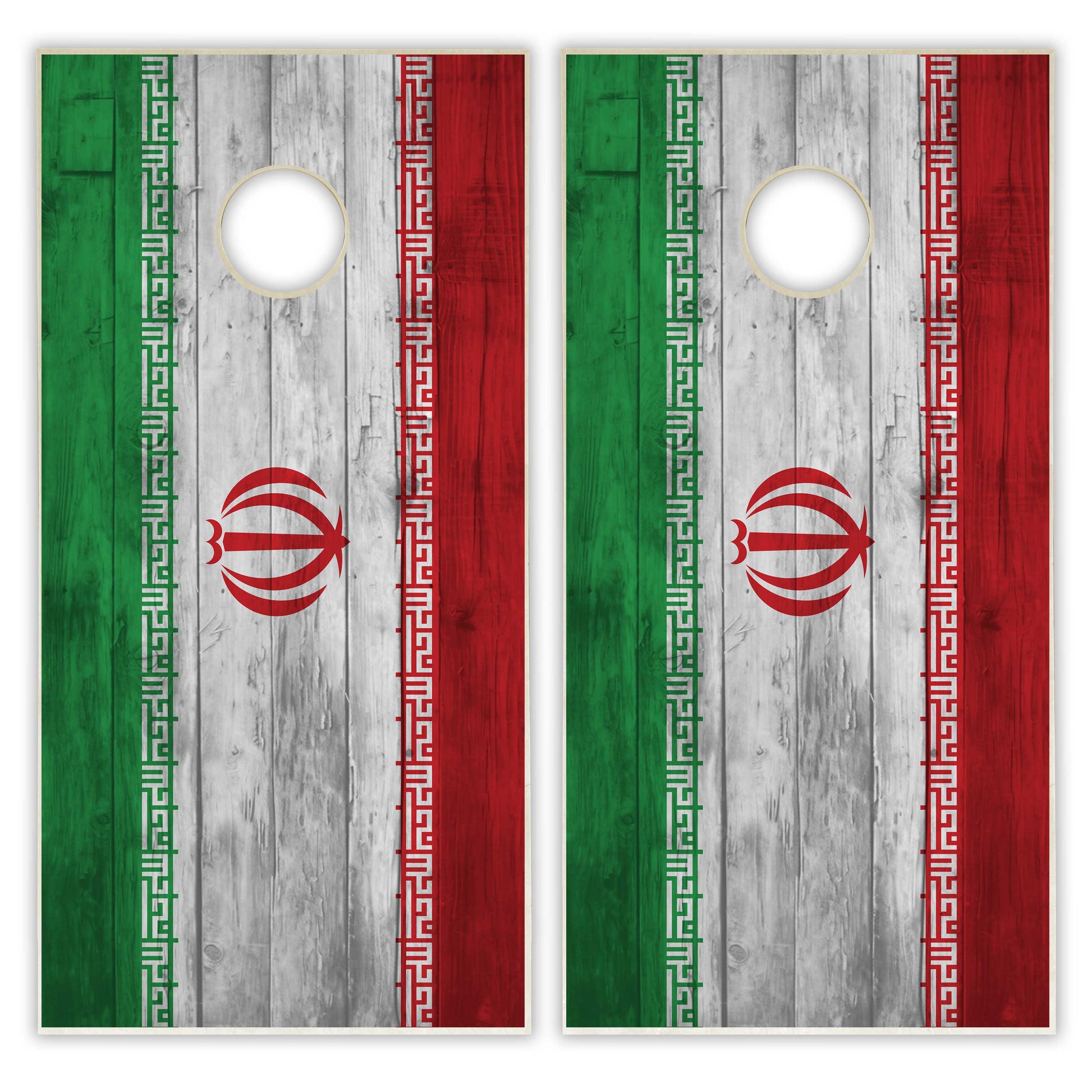 Show off at your next event with this specialty-designed Iran Flag Cornhole party game set!