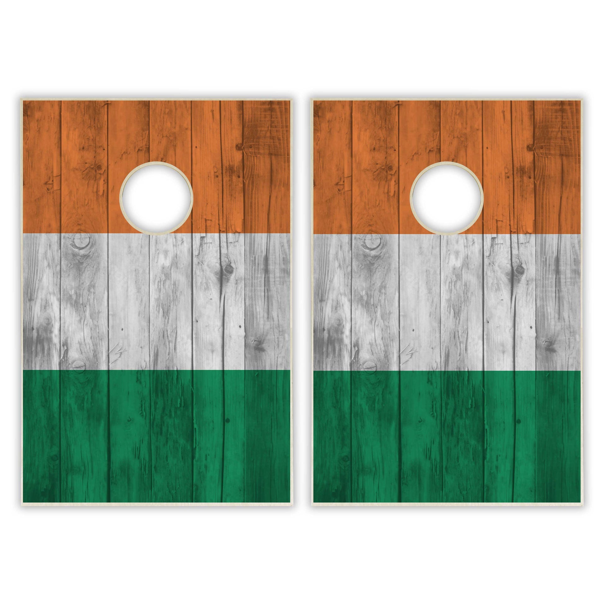 Ireland Flag Tailgate Cornhole Set - Distressed Wood