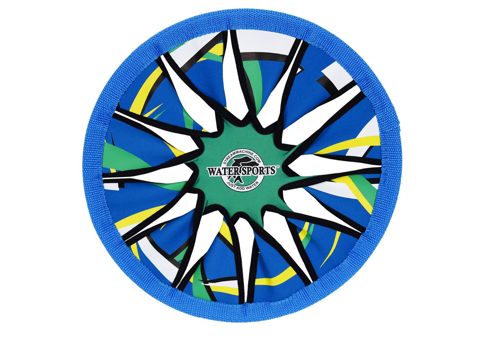 Made of TPE material, ItzaDisk absorbs minimal amounts of water, making it perfect for poolside and beachside recreation. With bright colors and the Water Sports logo on its front, the Itzadisk water frisbee is also visible against grass, sand, and gravel. Like a traditional frisbee, it saucers through the air and skips across wet surfaces. Play catch, monkey in the middle, or even disk golf with your whole family. With a light design and an aerodynamic construction, the ItzaDisk water frisbee is easy to catch and handle. Colors and packaging may vary.