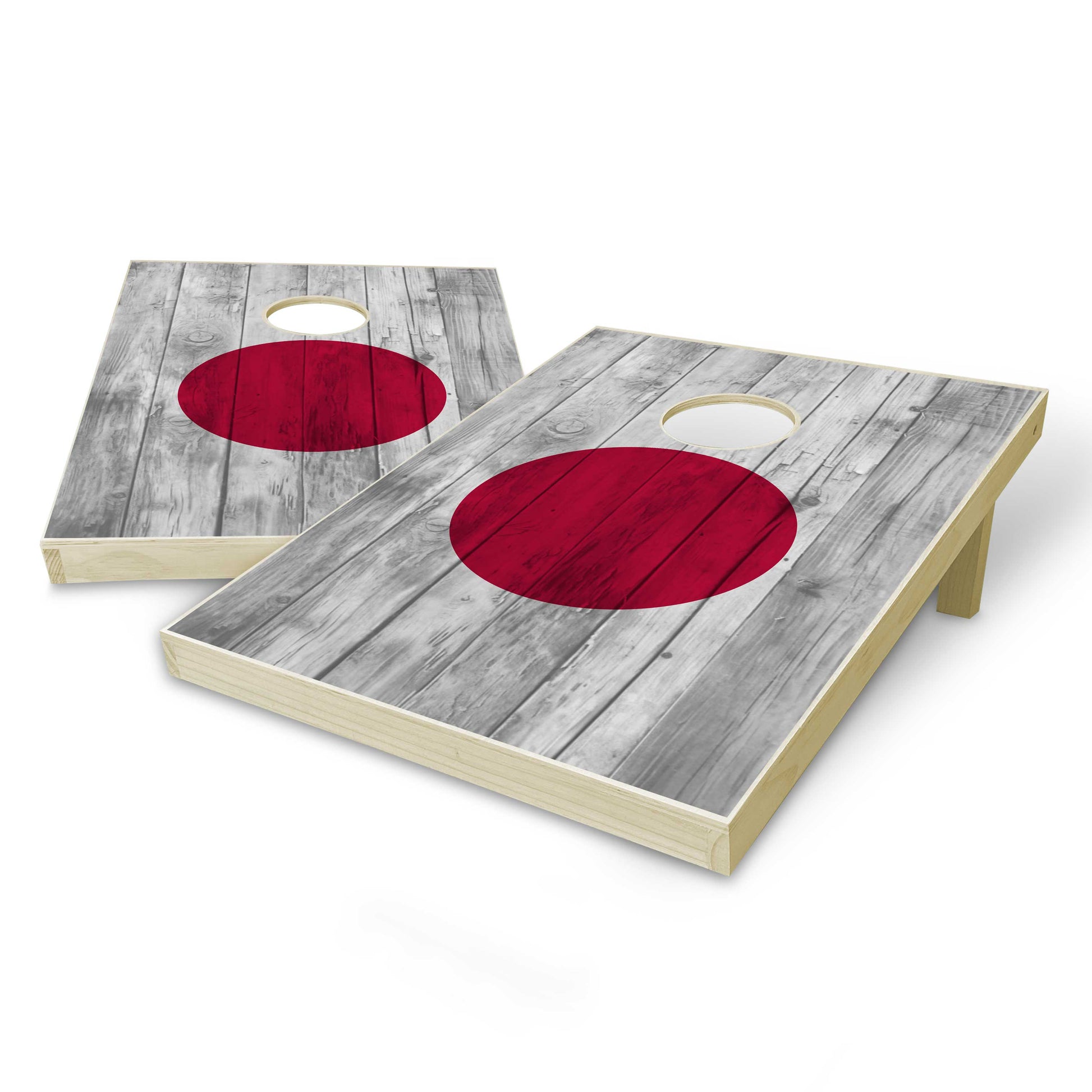 Japan Flag Tailgate Cornhole Set - Distressed Wood
