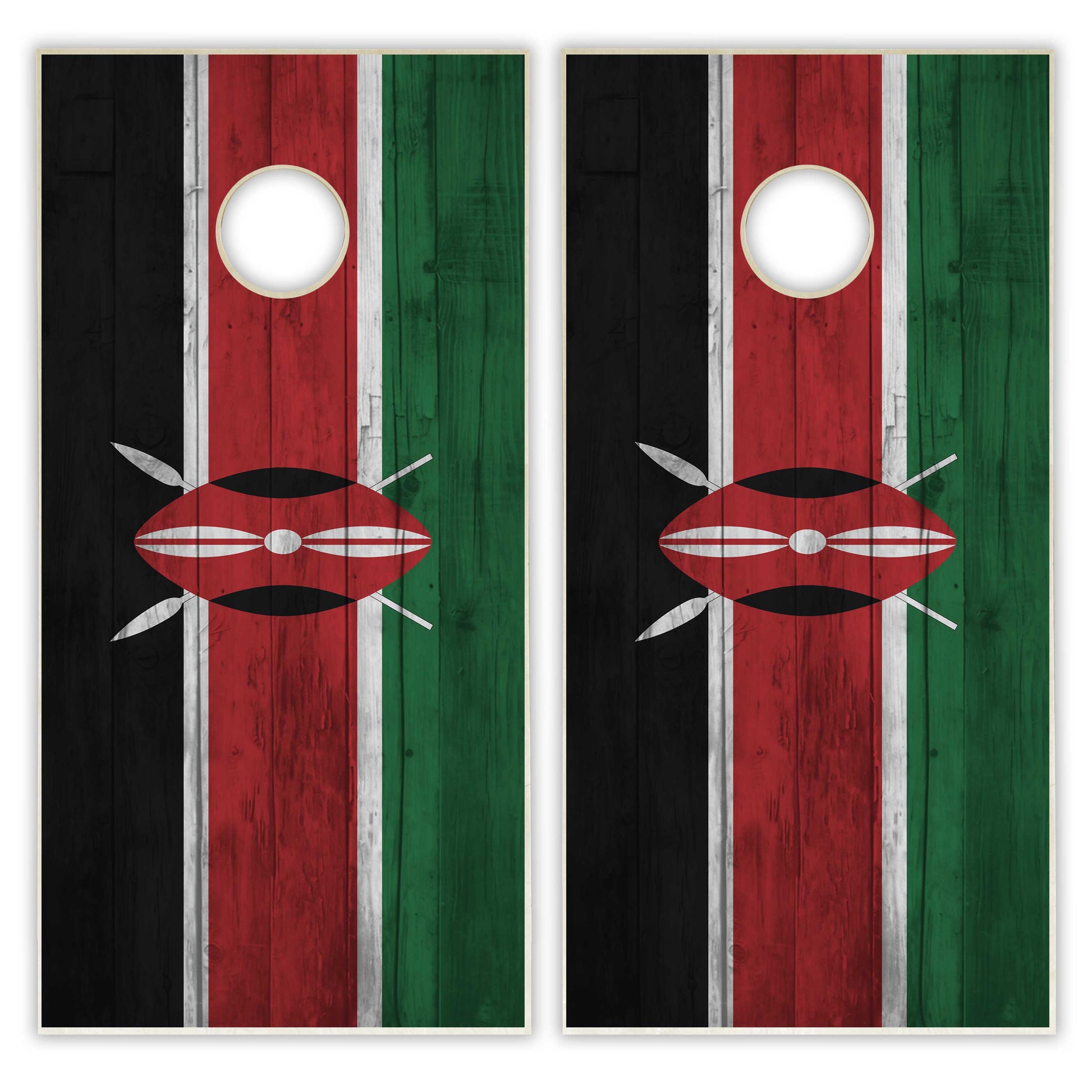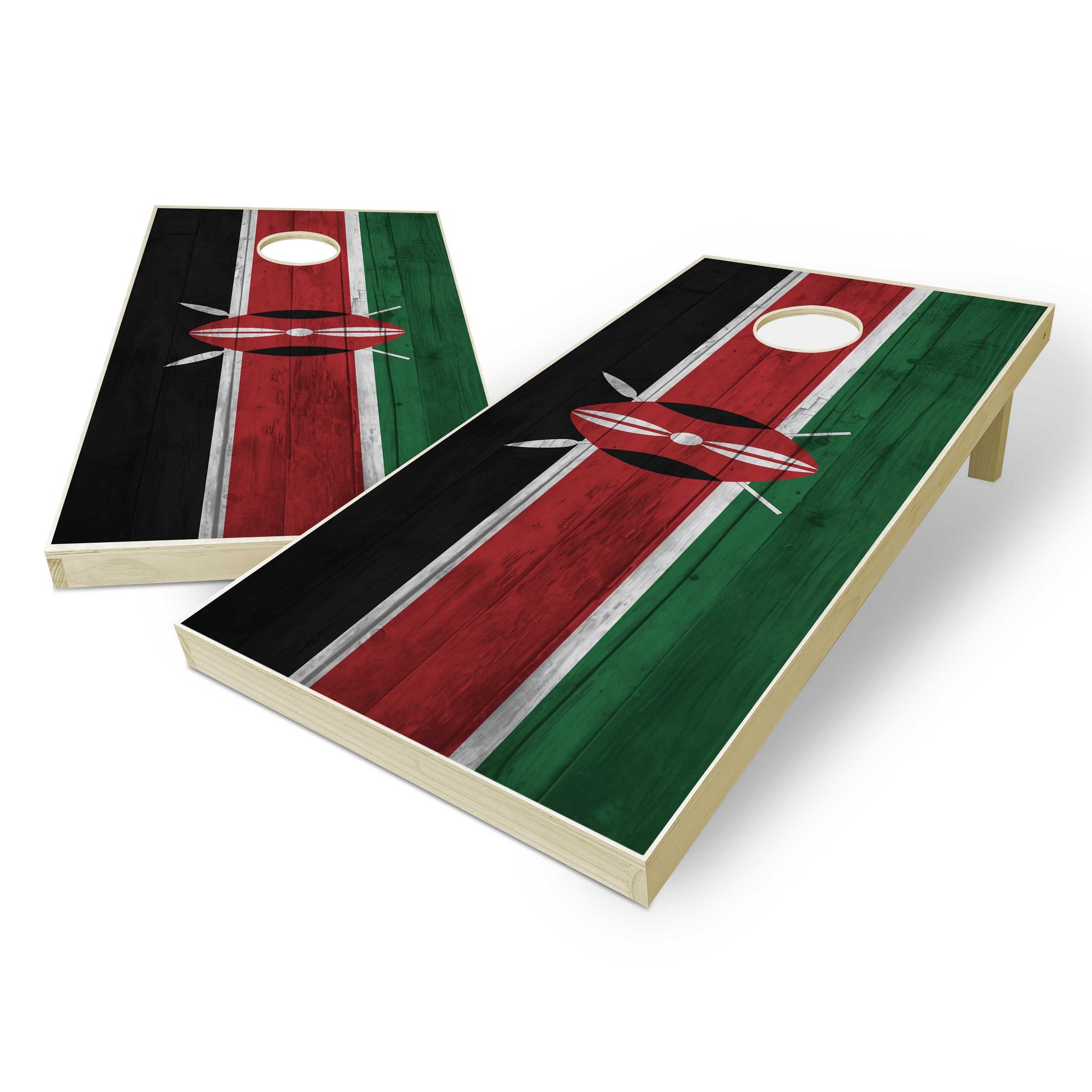 Show off at your next event with this specialty-designed Kenya Flag Cornhole party game set!