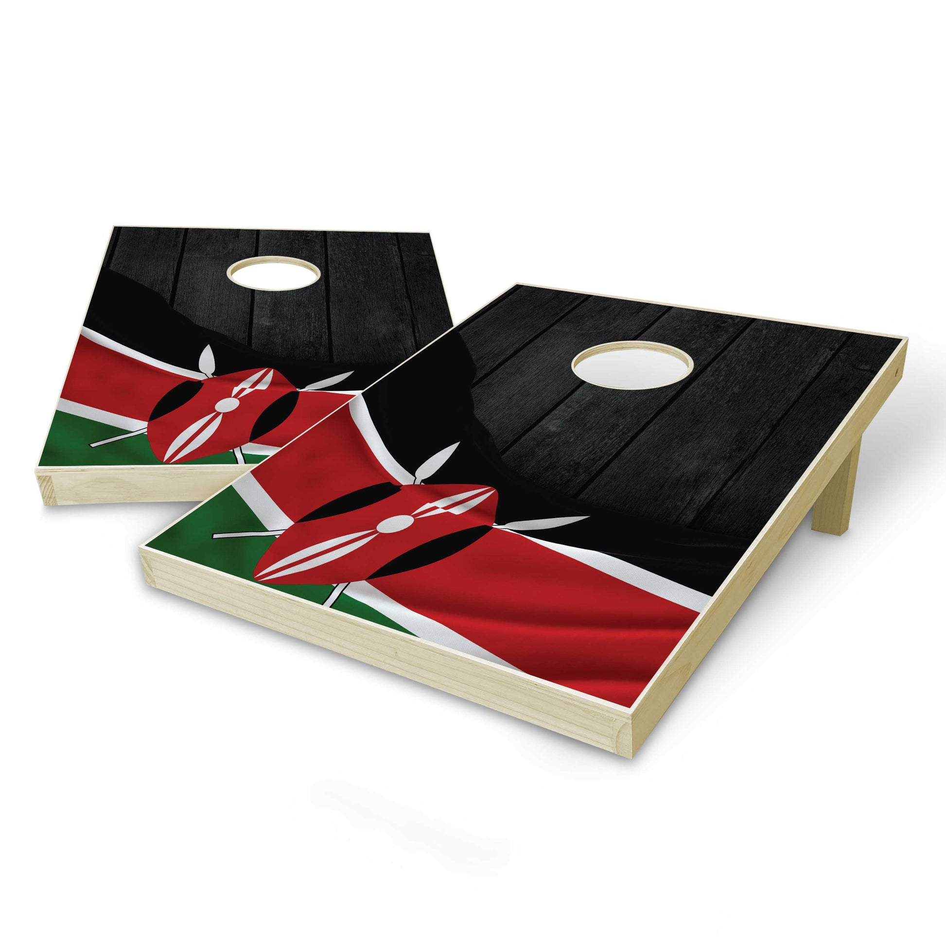 Kenya Flag Tailgate Cornhole Set - Black Wood