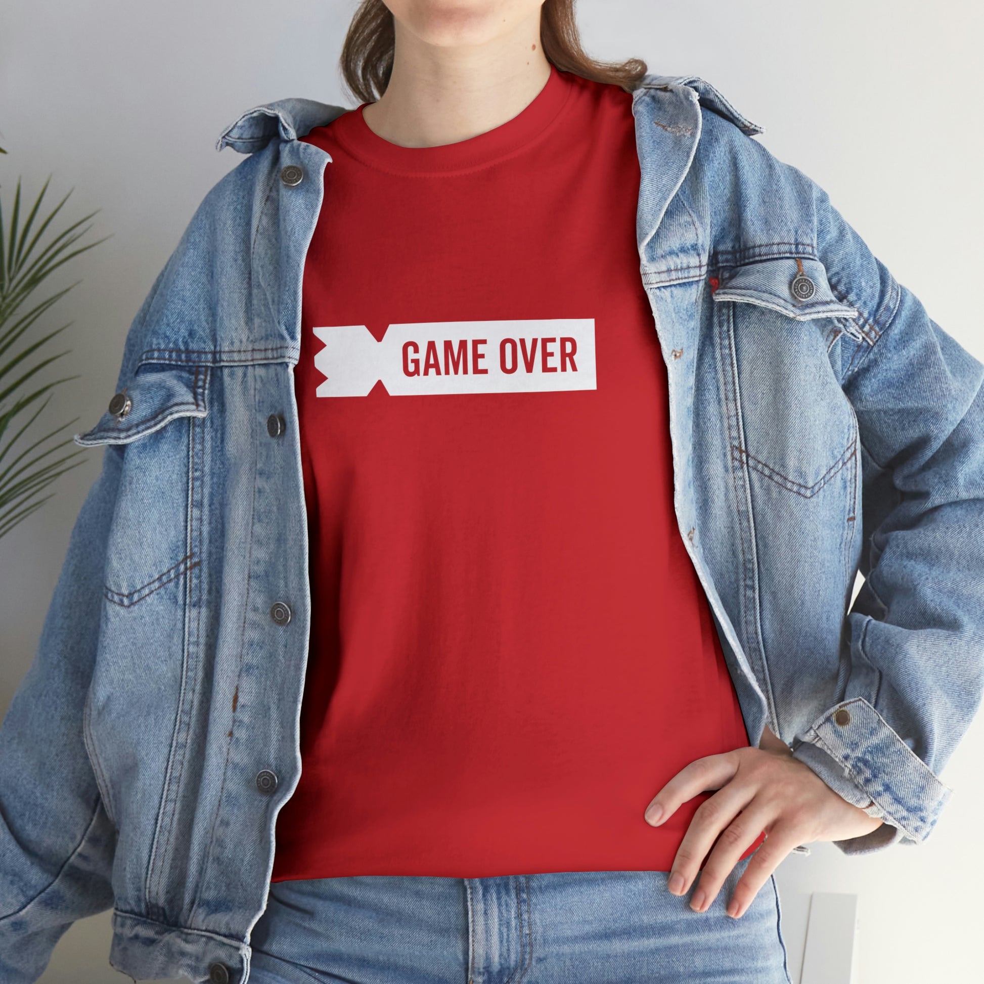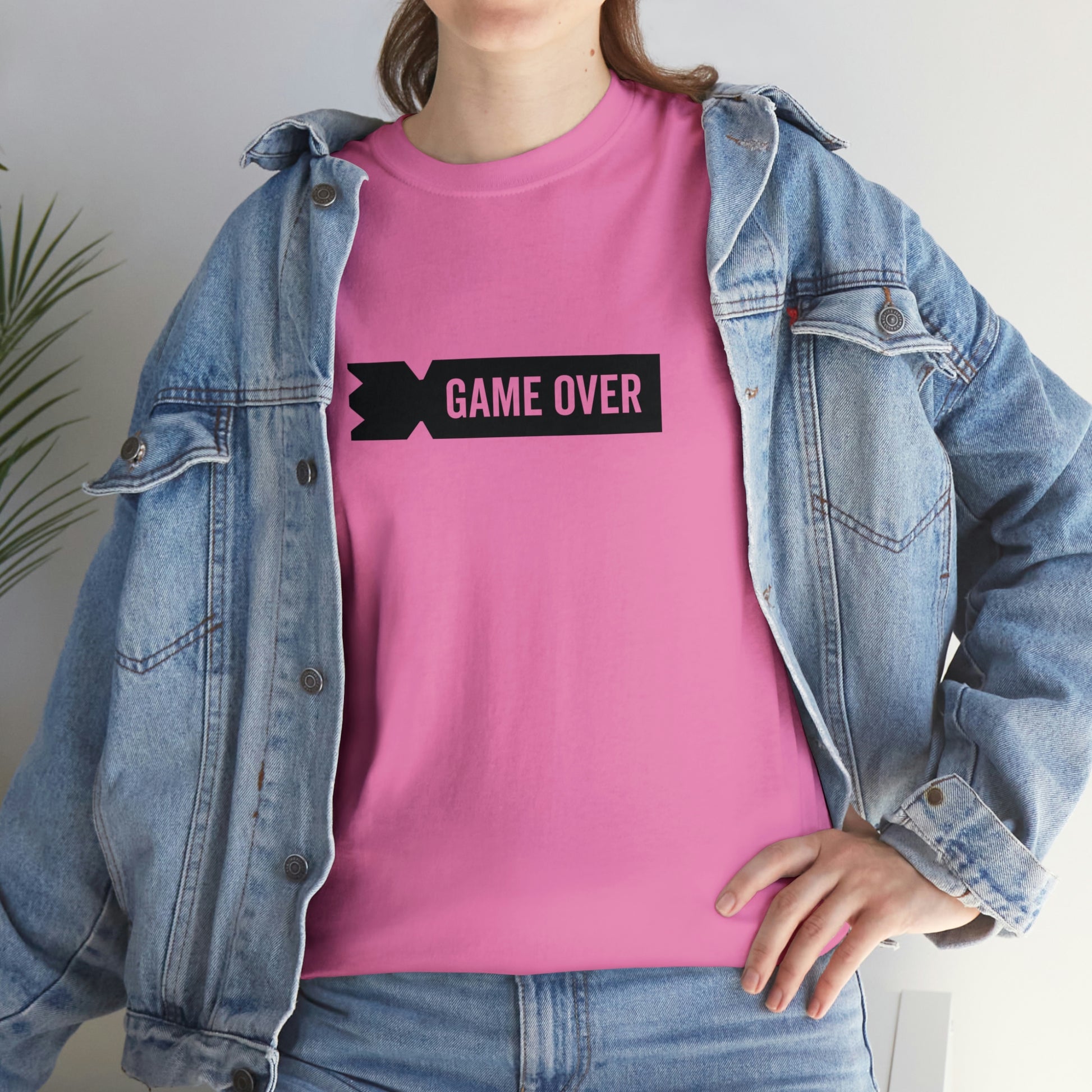 Stay comfortable while playing games outdoors with this "Game Over" t-shirt. This shirt is casual, loose fitting and will quickly become your favorite to wear while tossing dowels in the yard. The unisex heavy cotton tee is the basic staple of any wardrobe. It is the foundation upon which casual fashion grows. The specially spun fibers provide a smooth surface for premium printing vividity and sharpness. No side seams mean there are no itchy interruptions under the arms. The shoulders have tape for improved durability. Made from 100% cotton, medium fabric and classic fit. "Game Over" backyard t-shirt has a tear-away label and runs true to size.