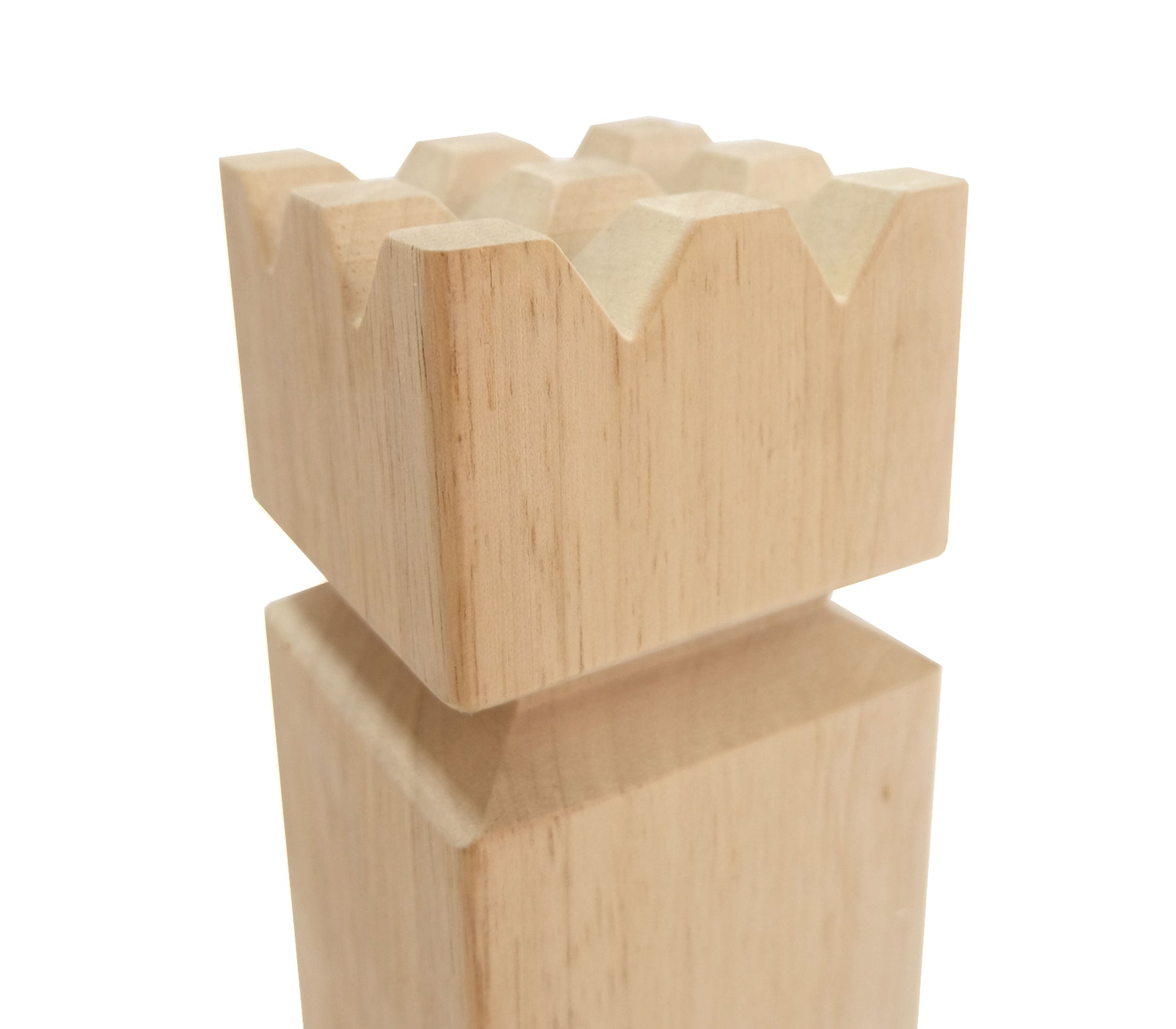 COMES WITH KUBB OFFICIAL SIZE COMPONENTS: 1 king (12" x 3.5" x 3.5"), 6 throwing dowels (12" x 1.75" round), 10 knights (6" x 2.75" x 2.75"), 4 wooden corner / center stakes, canvas transport / storage bag, and an instruction manual.