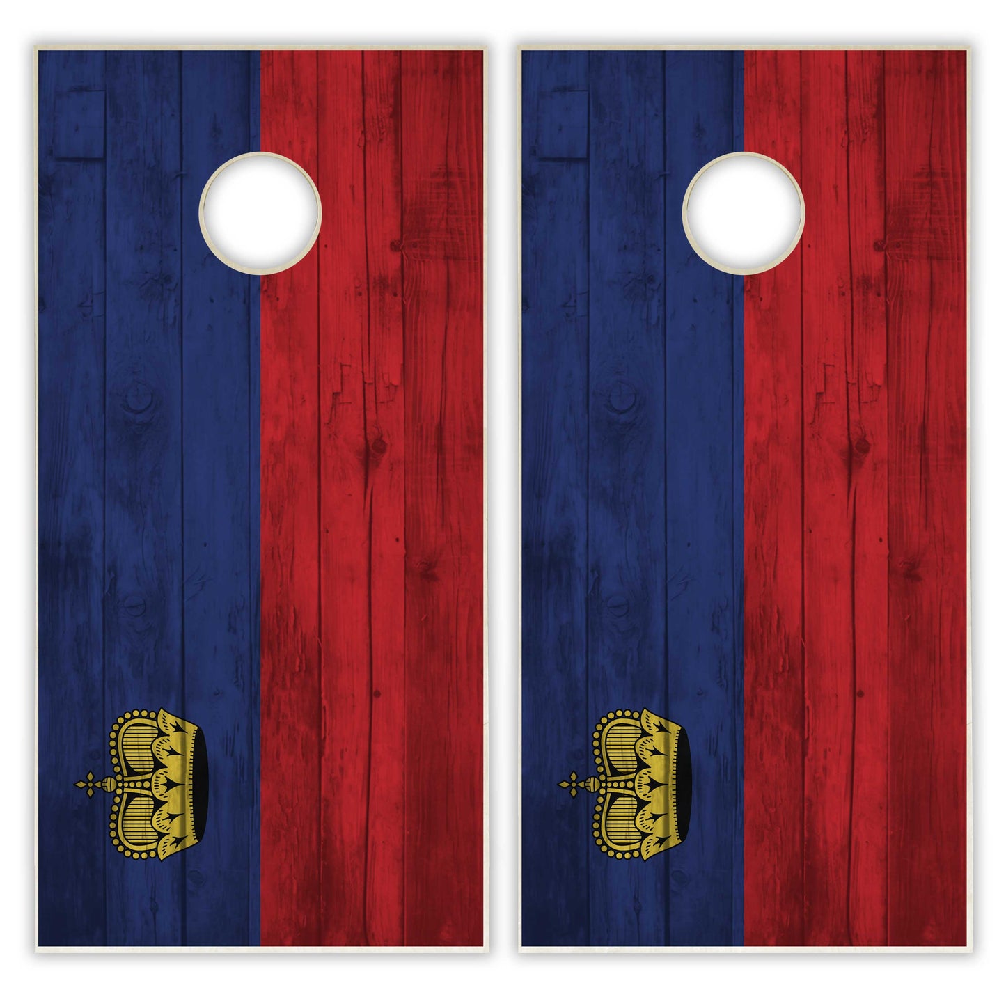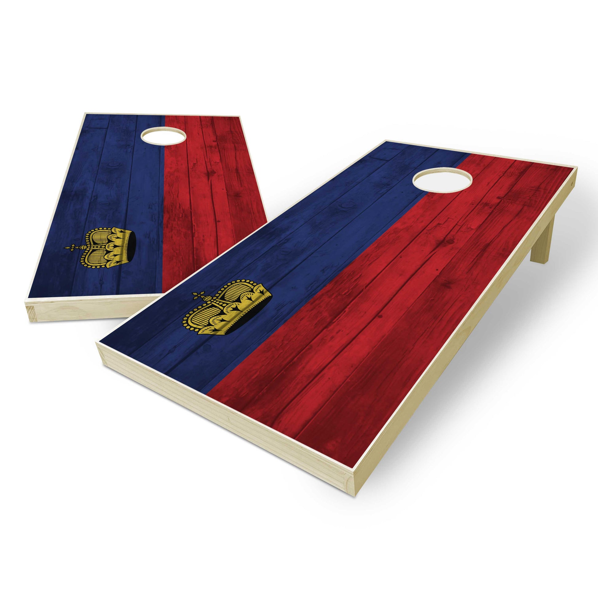 Liechtensteinn Flag Cornhole Set - Distressed Wood