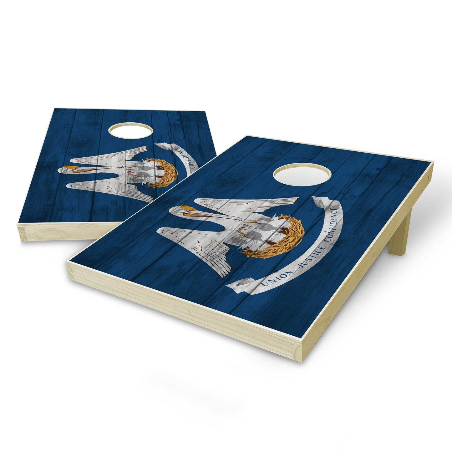 - 2 Regulation Size (24" x 36") Cornhole Boards with Louisiana Flag printed vinyl decals