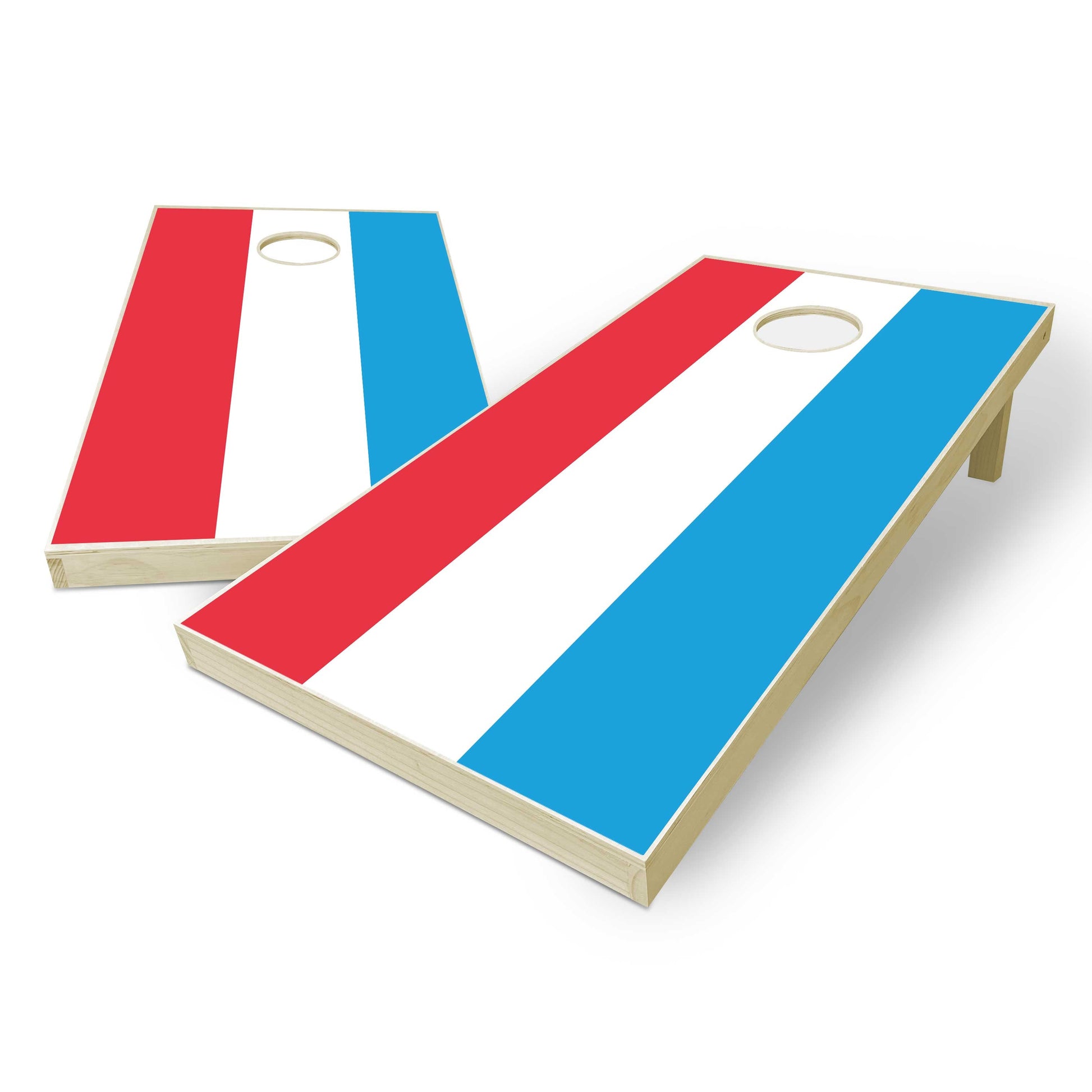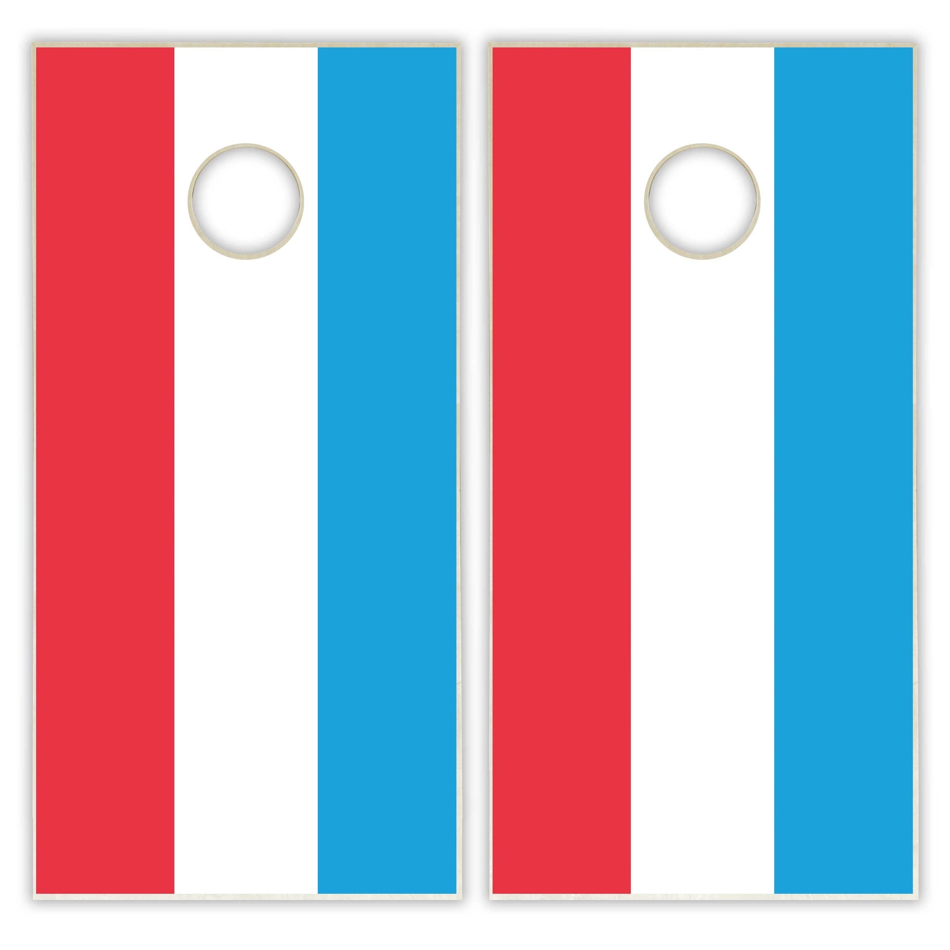 Show off at your next event with this specialty-designed Luxembourg Flag Cornhole party game set!