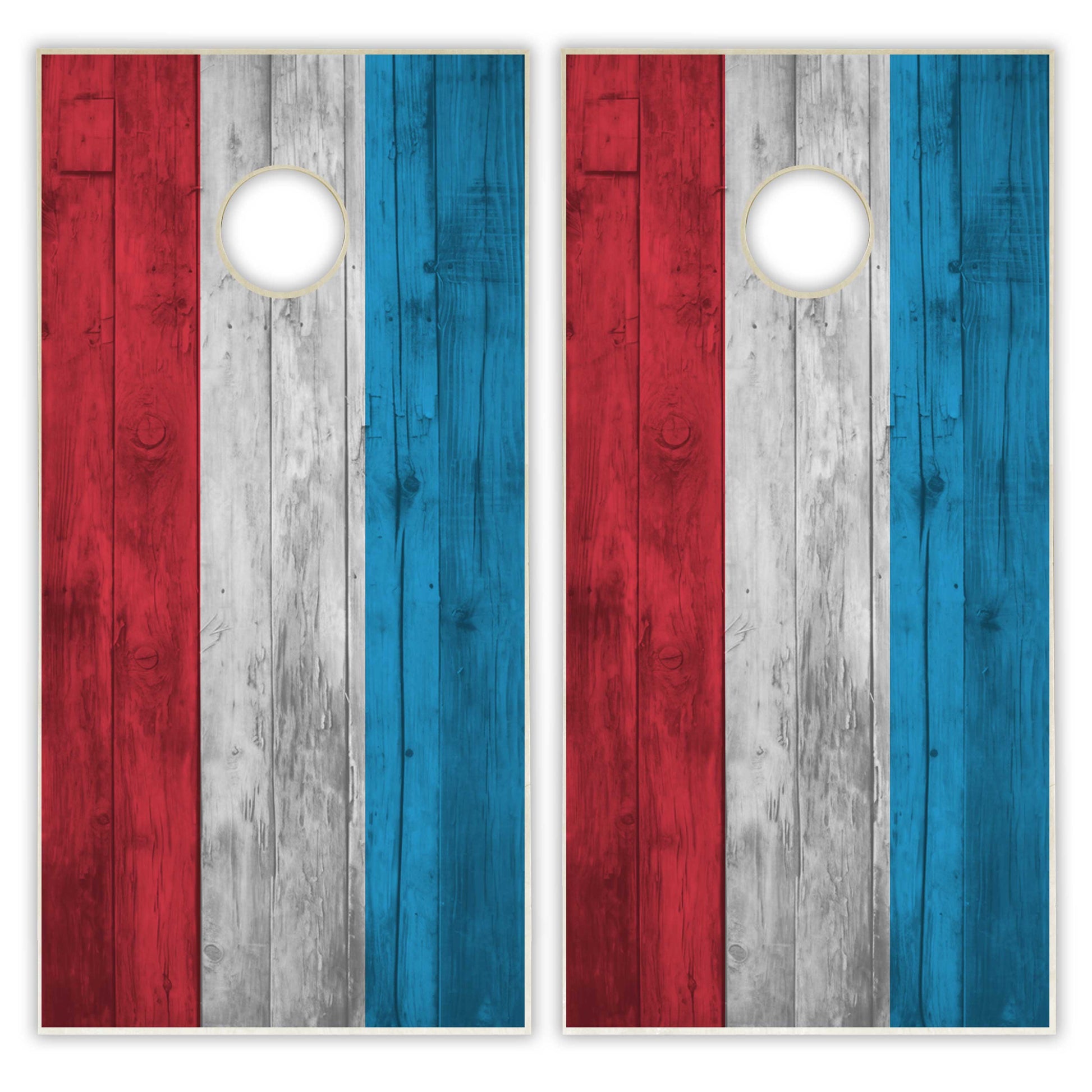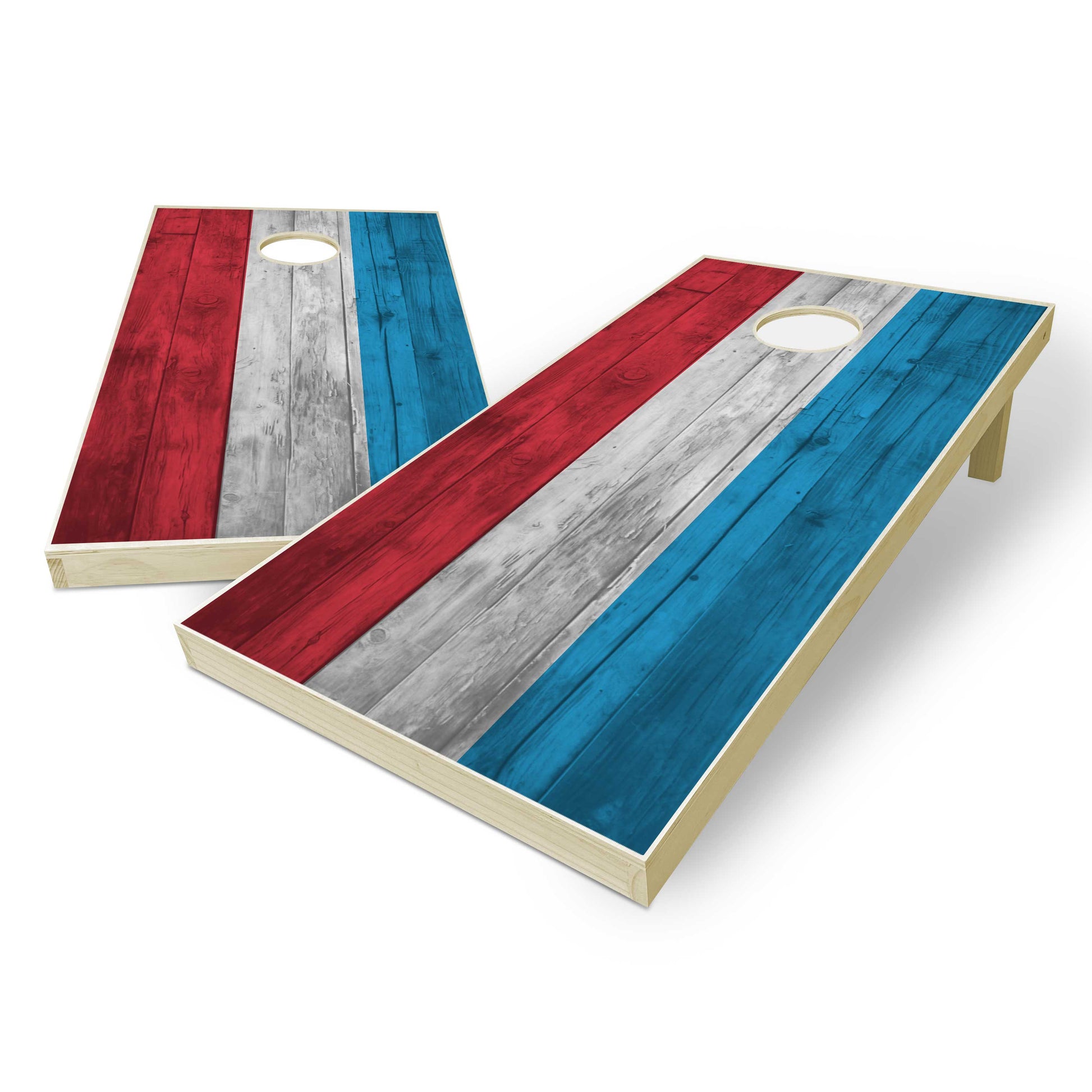 Luxembourg Flag Cornhole Set - Distressed Wood