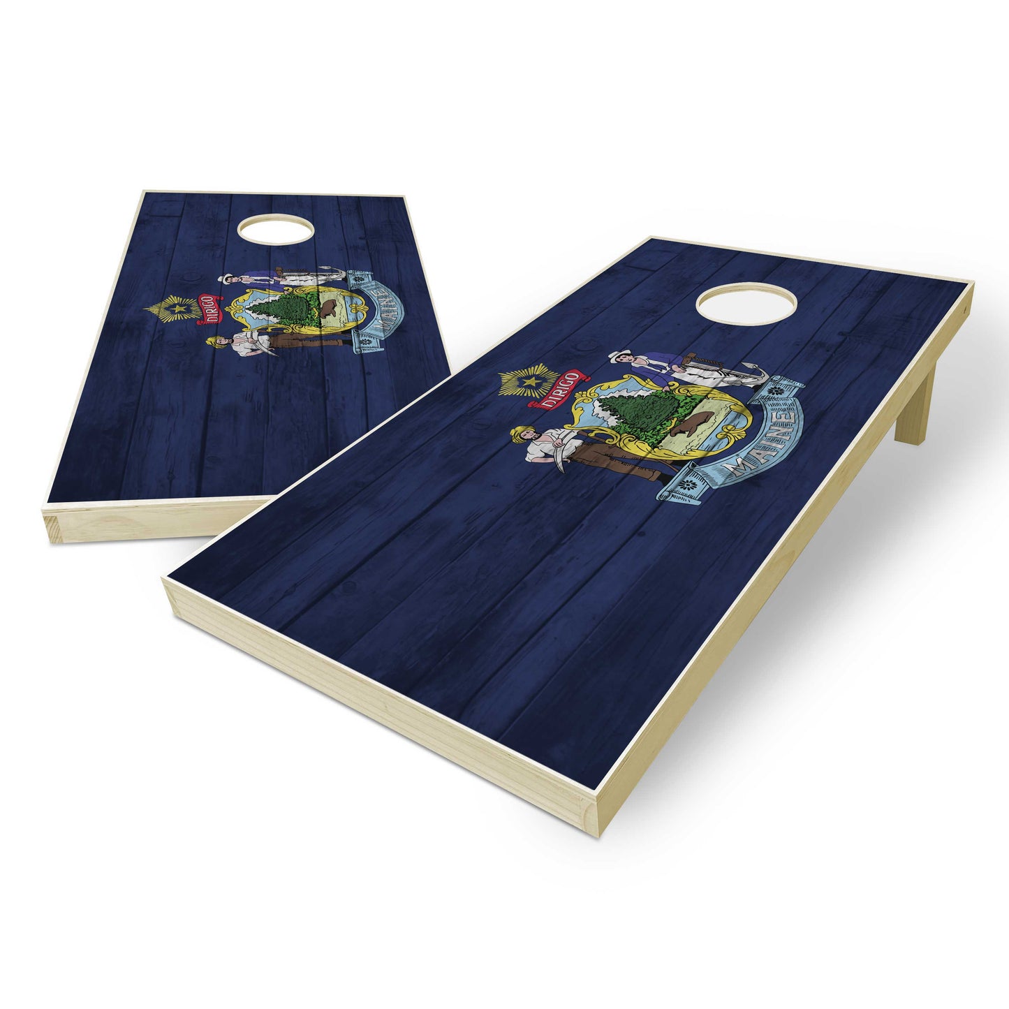 - 2 Regulation Size (24" x 48") Cornhole Boards with Maine Flag printed vinyl decals
