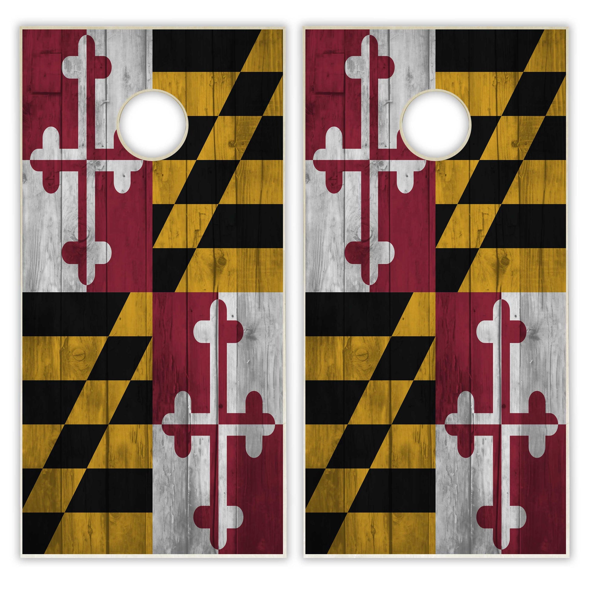 - 2 Regulation Size (24" x 48") Cornhole Boards with Maryland Flag printed vinyl decals