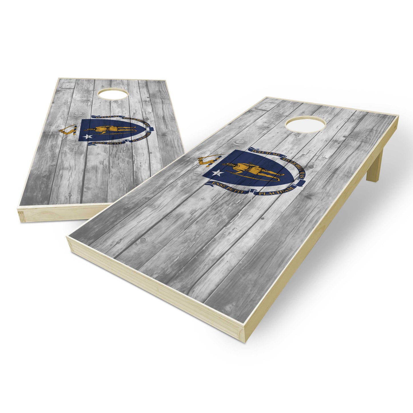 MassachuSet - Distressed Woodts State Flag Cornhole Set - Distressed Wood